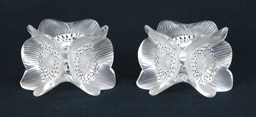 Lot 121 | Coppia di candelieri in cristallo marcati Lalique France, modello Anemoni,...