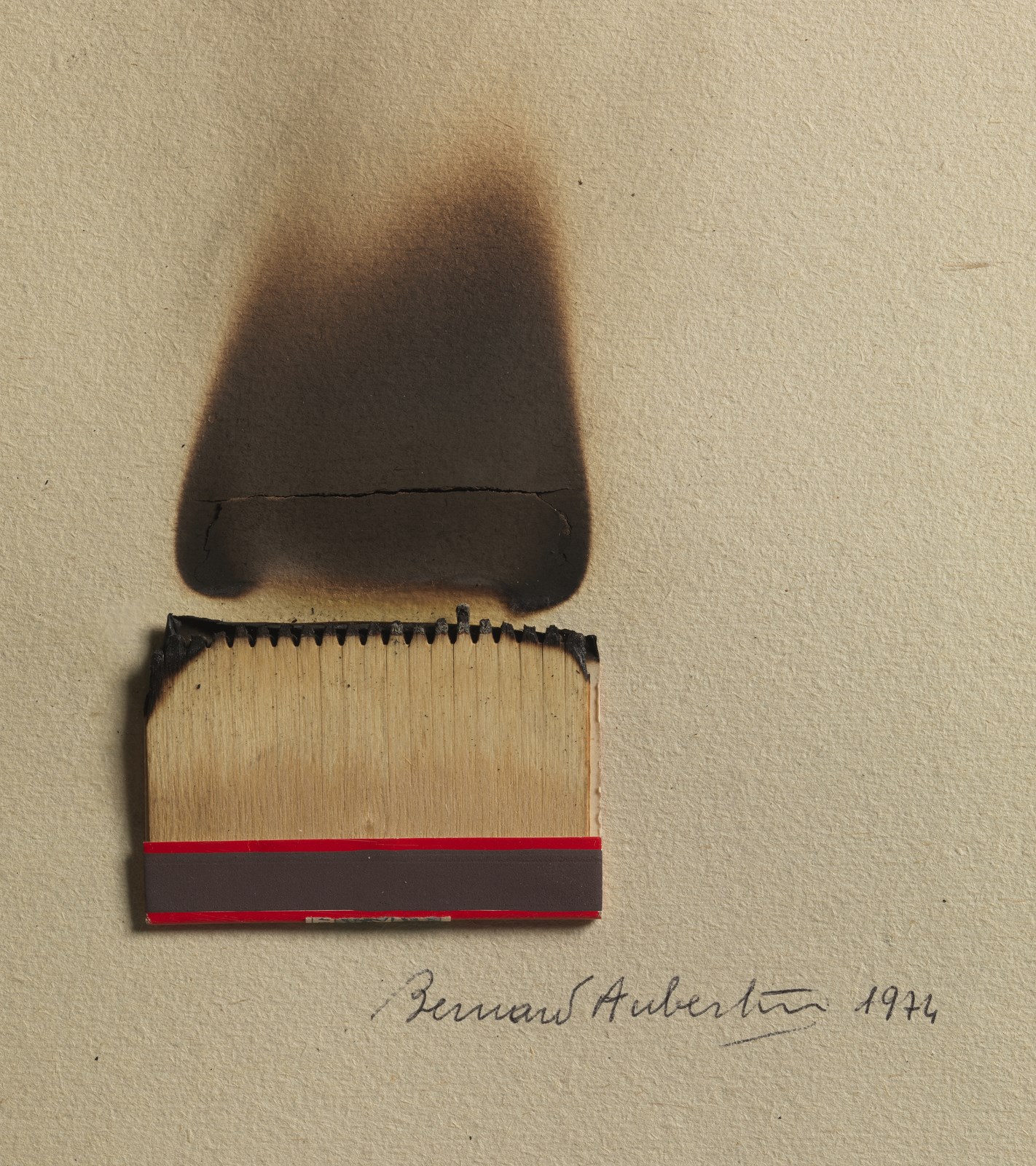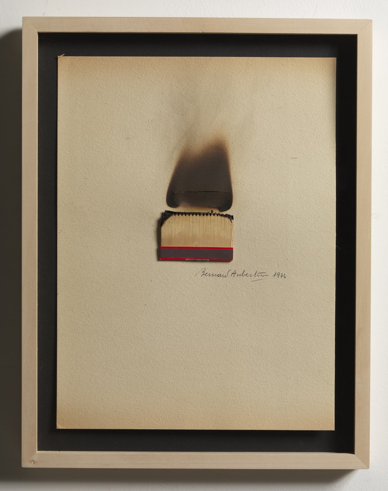 AUBERTIN BERNARD (1934 - 2015) Dessin de feu. 1974. Fiammiferi bruciati su carta. Cm 29,00 x 37,50. Firma e anno in basso a destra. Certificato di autenticità con timbro e firma dell'Archivio Bernard Aubertin, Brescia. Si ringrazia l'Archivio Bernard Aubertin, Brescia, per aver confermato l'autenticità dell'opera. Cornice presente