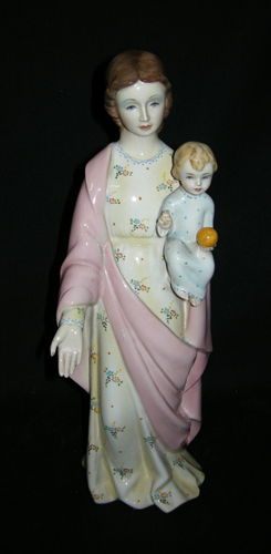 Statuina in ceramica dipinta raffigurante Madonna con bambino, firmata sul...