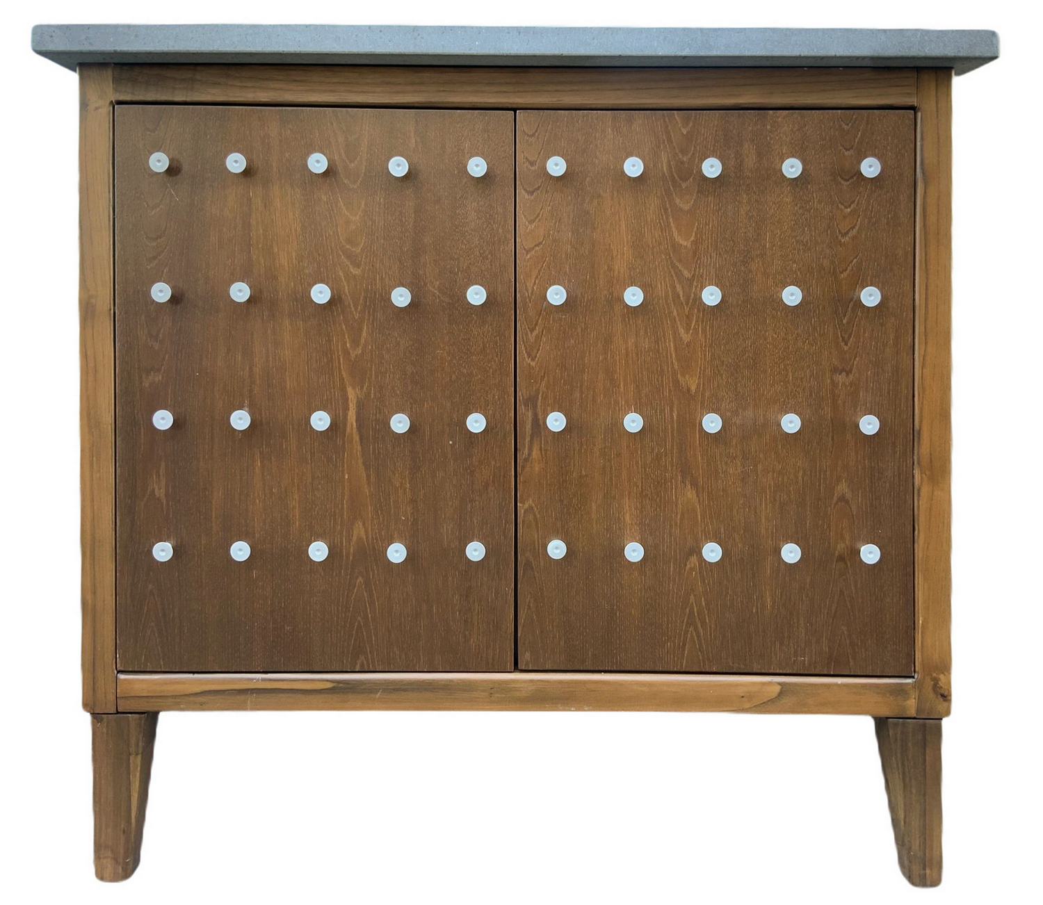 Mobile in legno di noce a due ante con borchie sul fronte, piano in pietra...