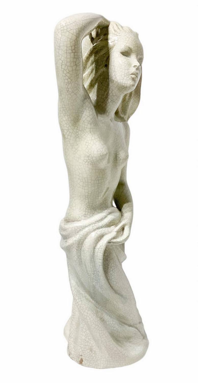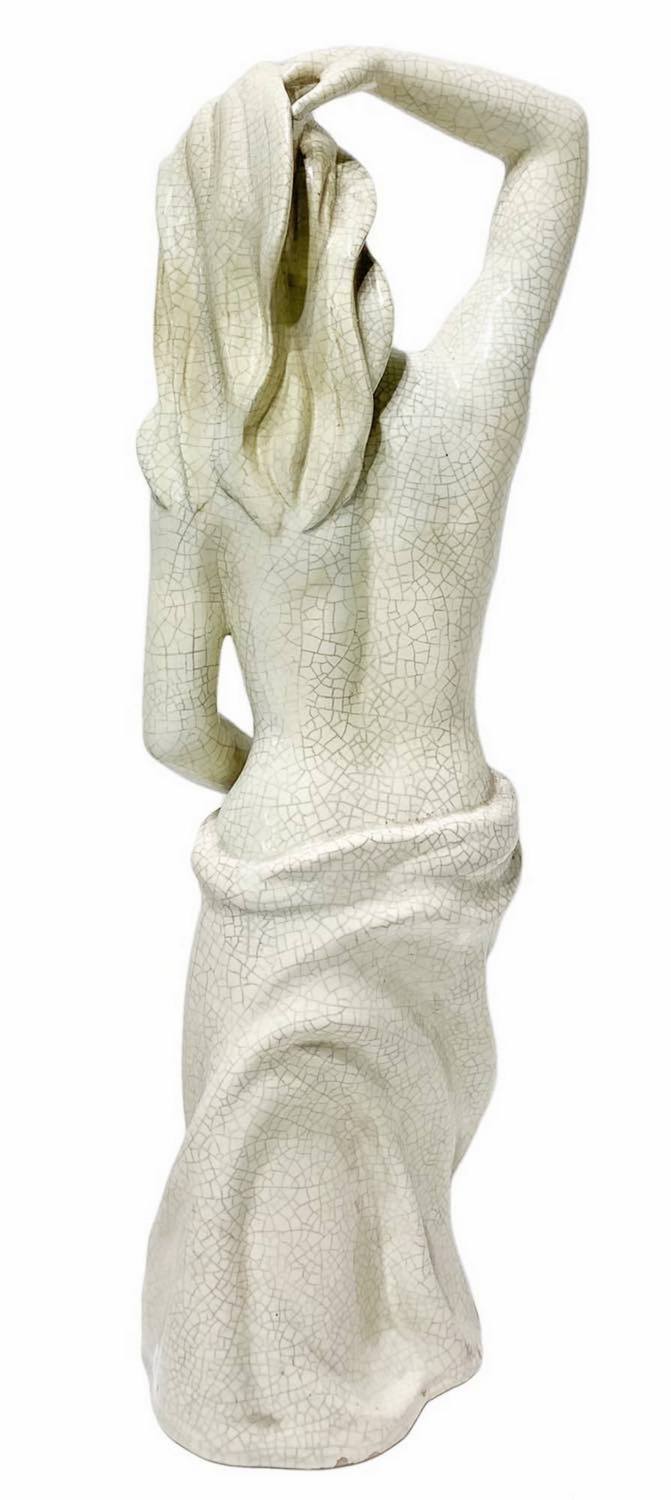 Le Bertetti, scultura in pasta bianca effetto craquele raffigurante donna bagnante con drappo. Anni ‘50,firmato sulla base Le Bertetti Torino Italia, Emanuela n° 80.