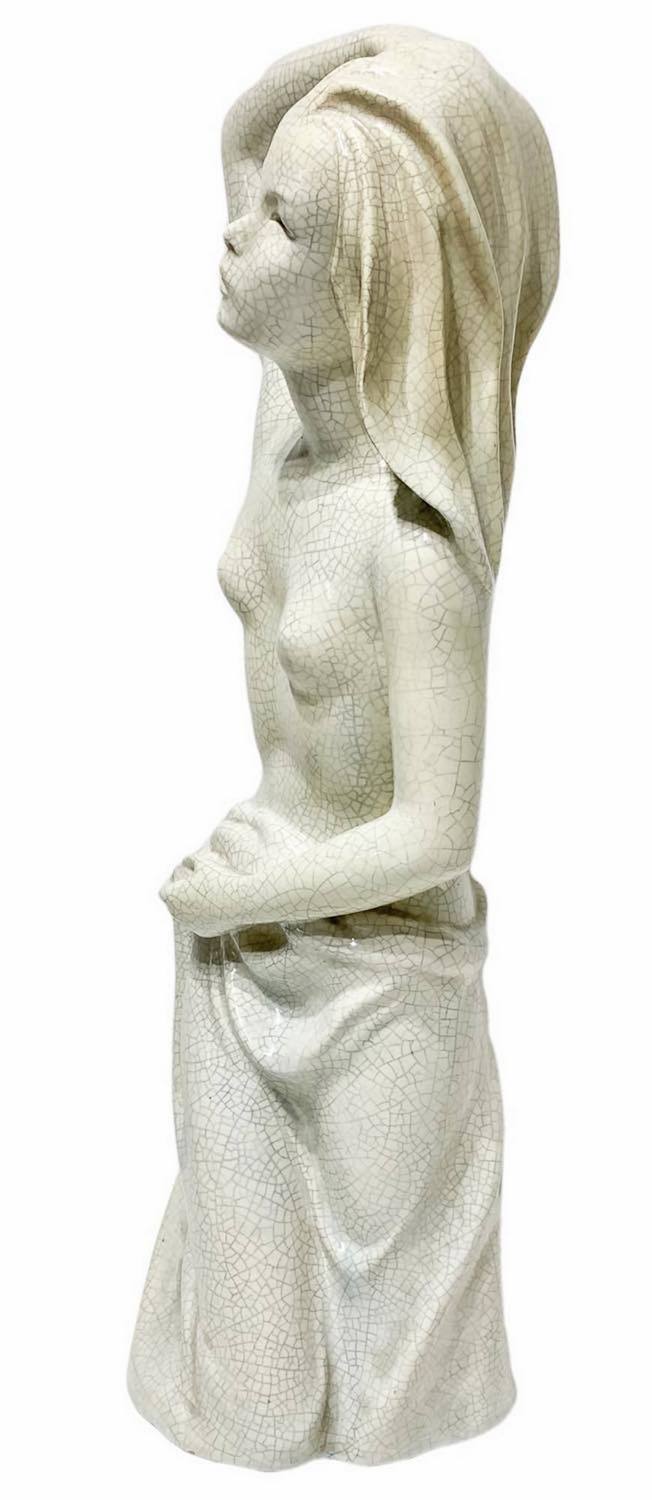 Le Bertetti, scultura in pasta bianca effetto craquele raffigurante donna...