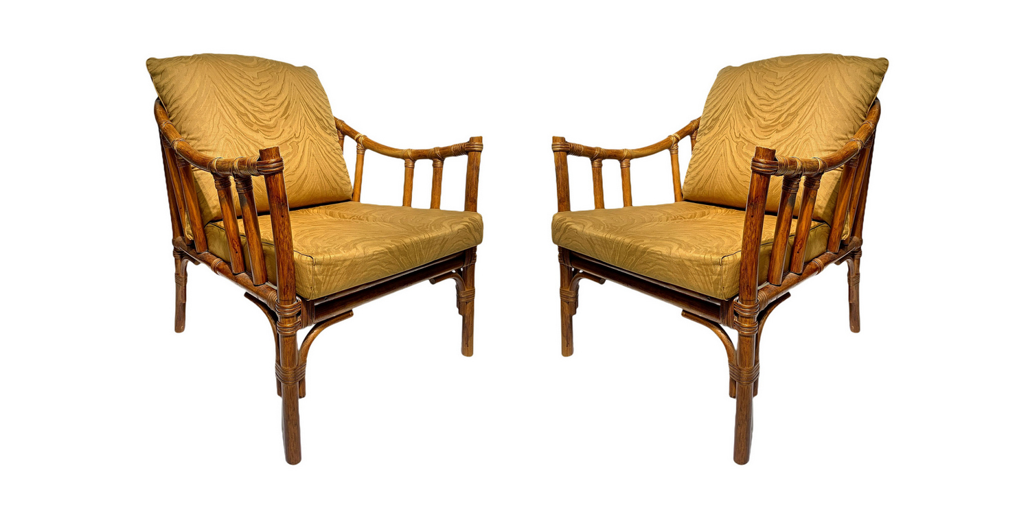 Due poltrone in rattan, XX secolo. H cm 67 x 70