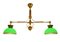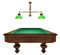 Biliardo per carambola, struttura in legno di noce. fine XIX, inizi XX secolo,Provvisto di lampadario vintage a due luci, con struttura in ottone e diffusore in vetro nei toni del verde