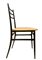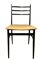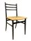 Produzione Saffa, disegno Guglielmo Ulrich, modello Trieste. Gruppo di quattro sedie. Anni '50,struttura in legno laccato nero e sistema di incastro brevettato a coda di rondine, seduta rivestita in tessuto. Segni di uso.