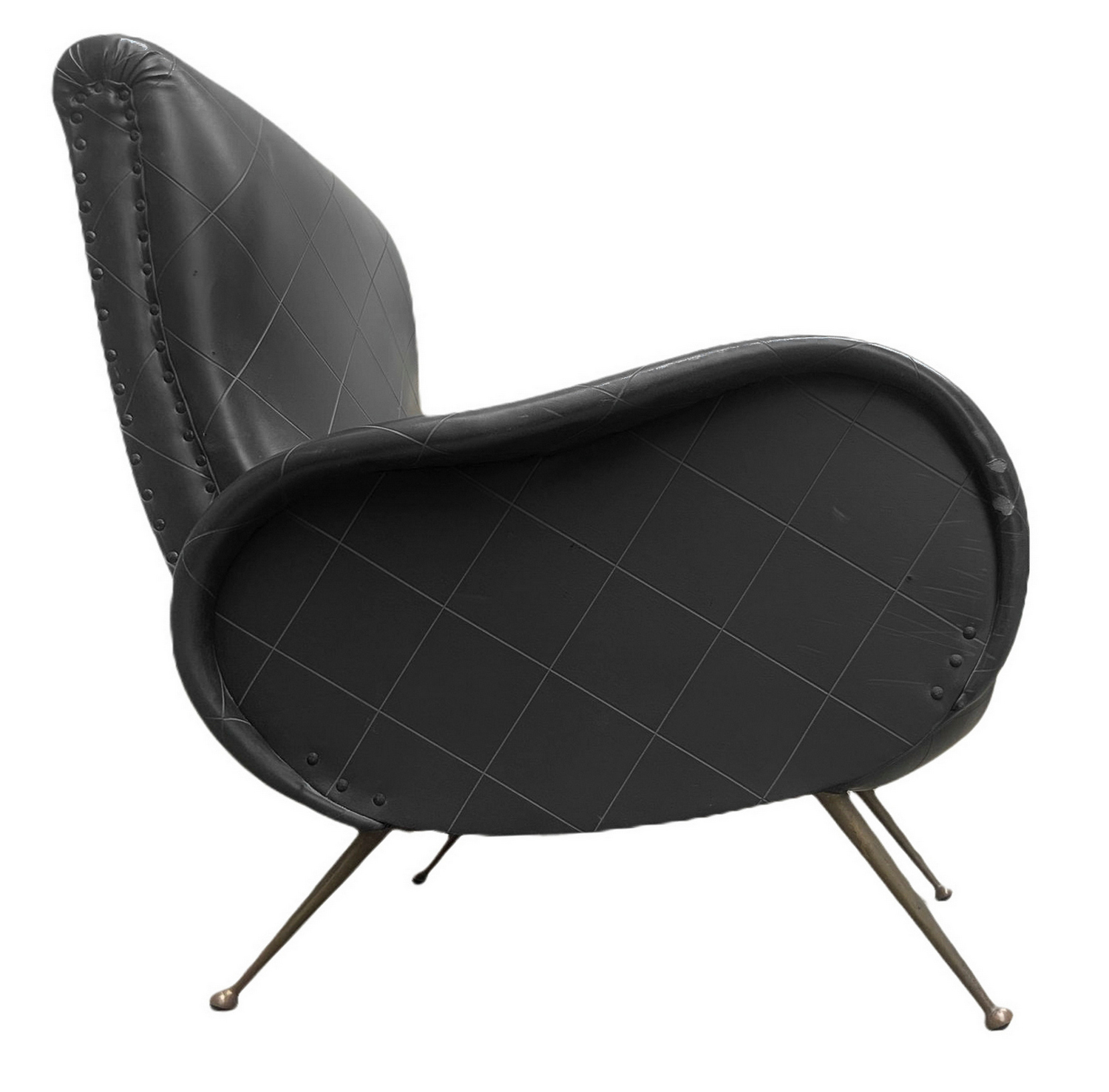 Produzione italiana nello stile di Marco Zanuso. Coppia di poltrone. Anni '60,struttura in legno rivestimento in sky tissurato, piedi in ottone. Segni di uso.