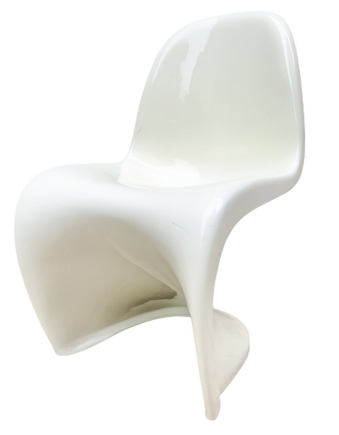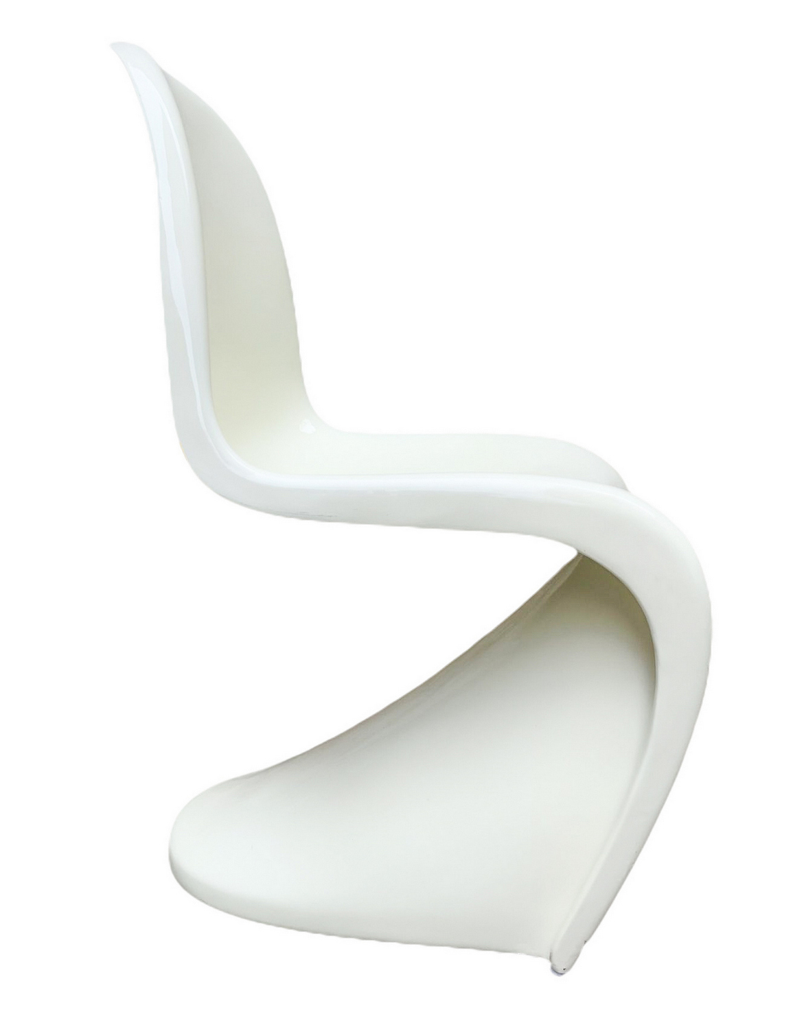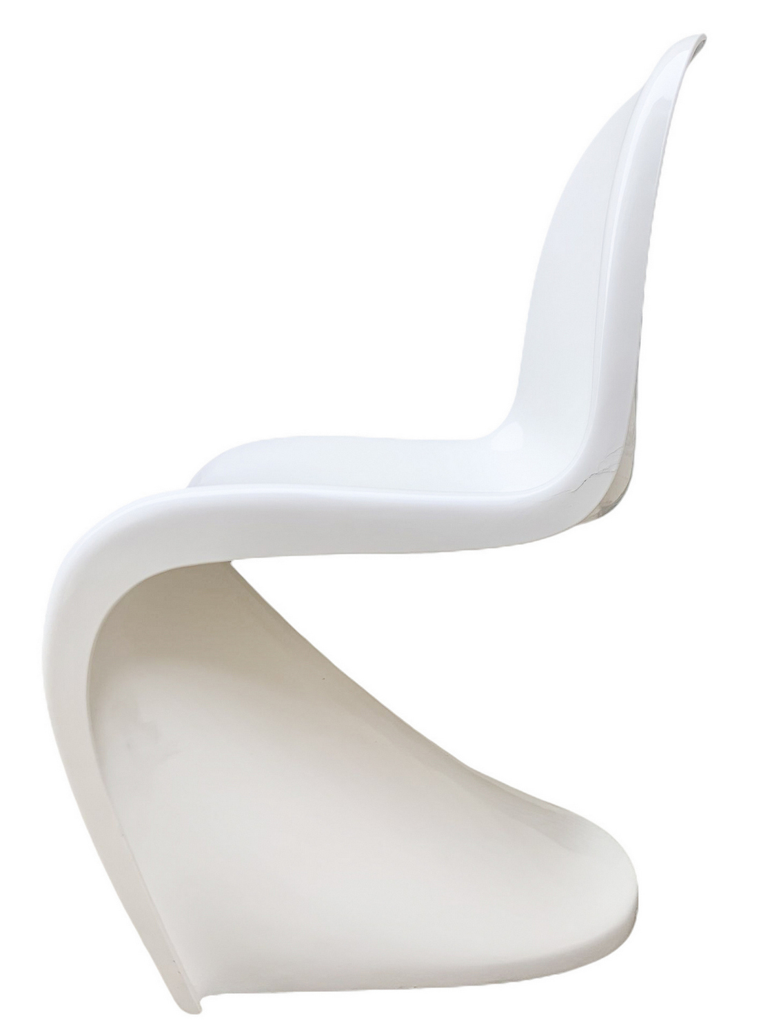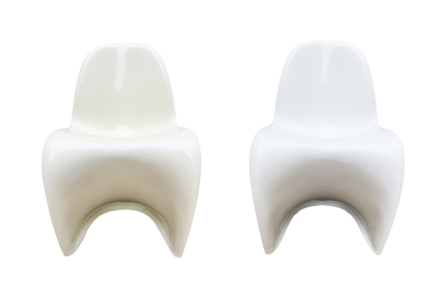 Produzione italiana nello stile di Verner Panton. Coppia di sedie. Anni '70,in resina terno formata nei toni del bianco. Segni di uso e ingiallimenti. Una presenta crepature sul fianco