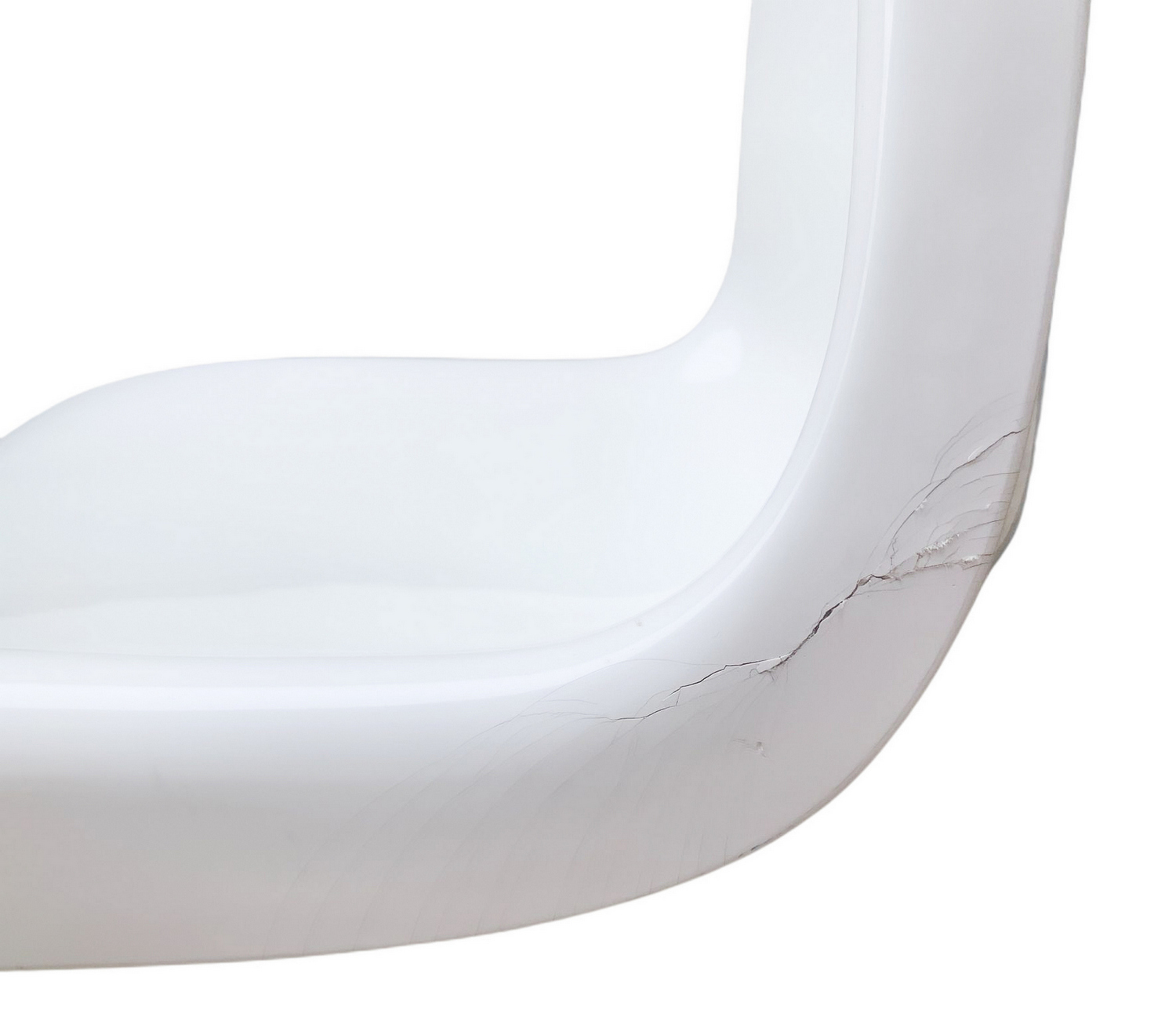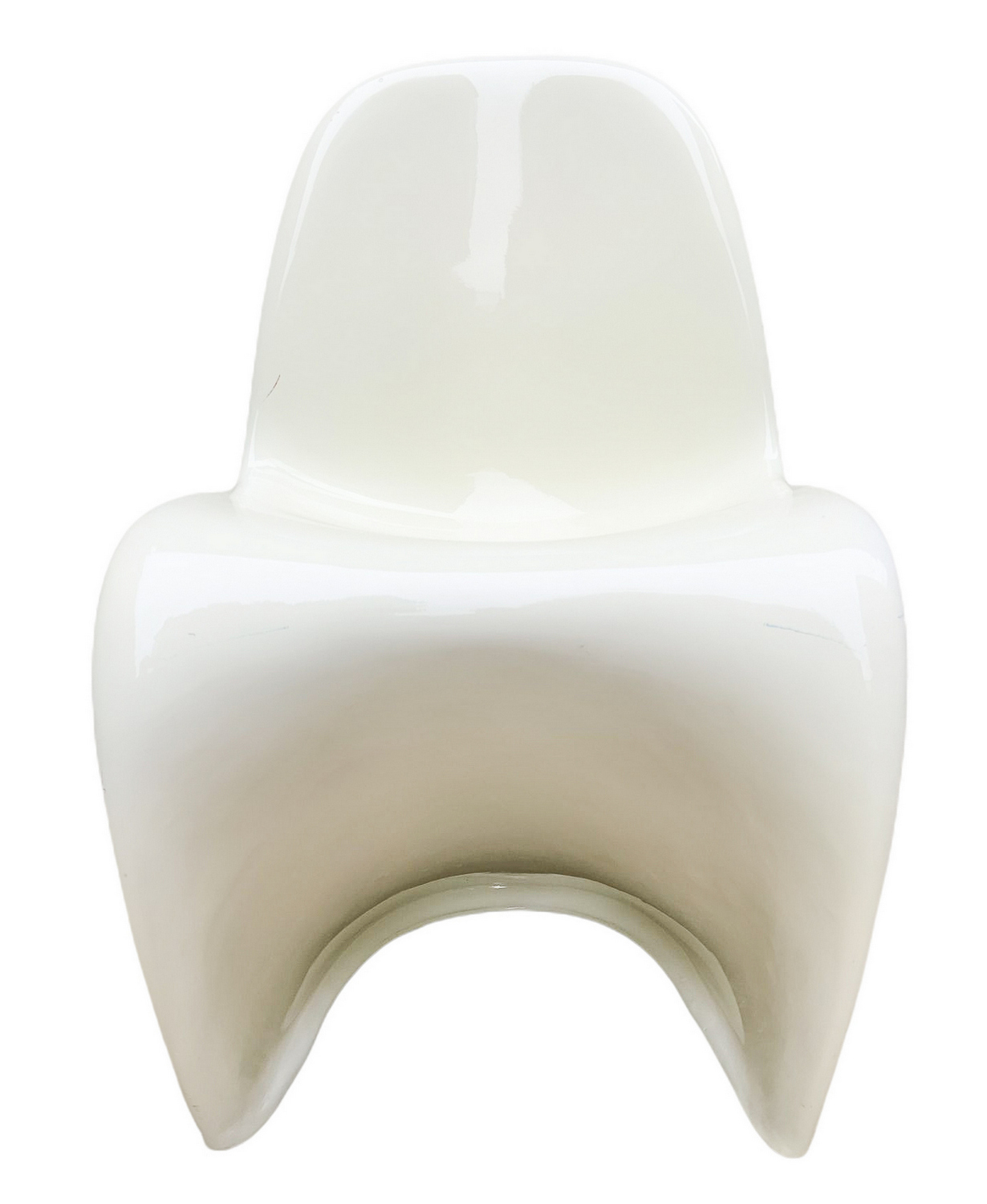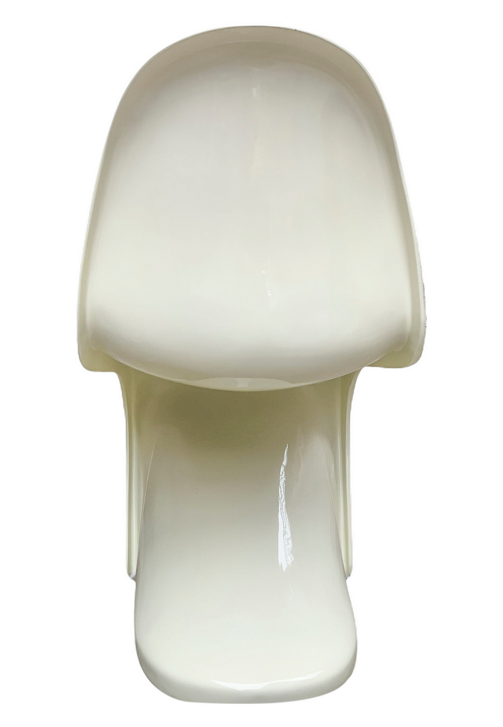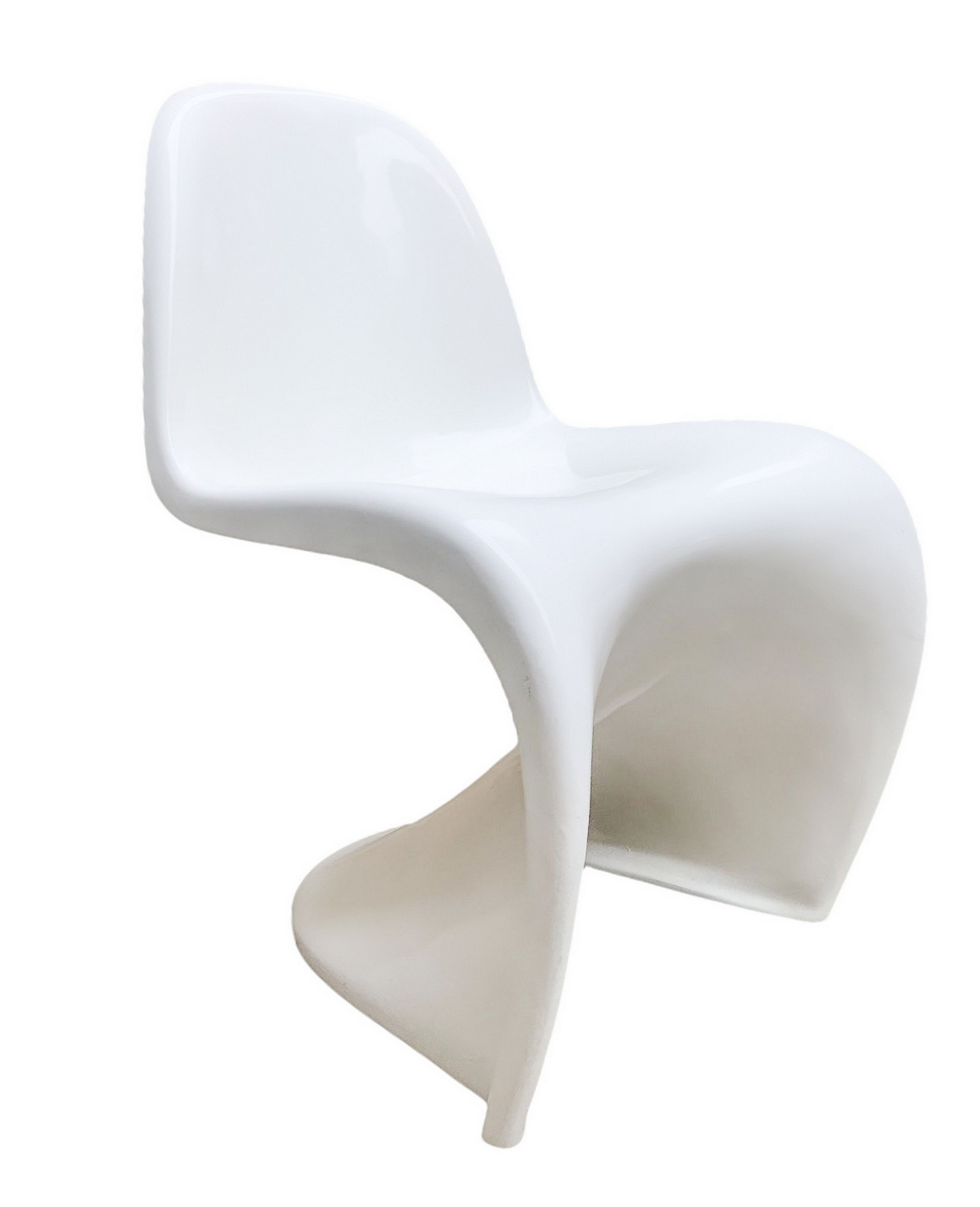 Produzione italiana nello stile di Verner Panton. Coppia di sedie. Anni '70,in resina terno formata nei toni del bianco. Segni di uso e ingiallimenti. Una presenta crepature sul fianco