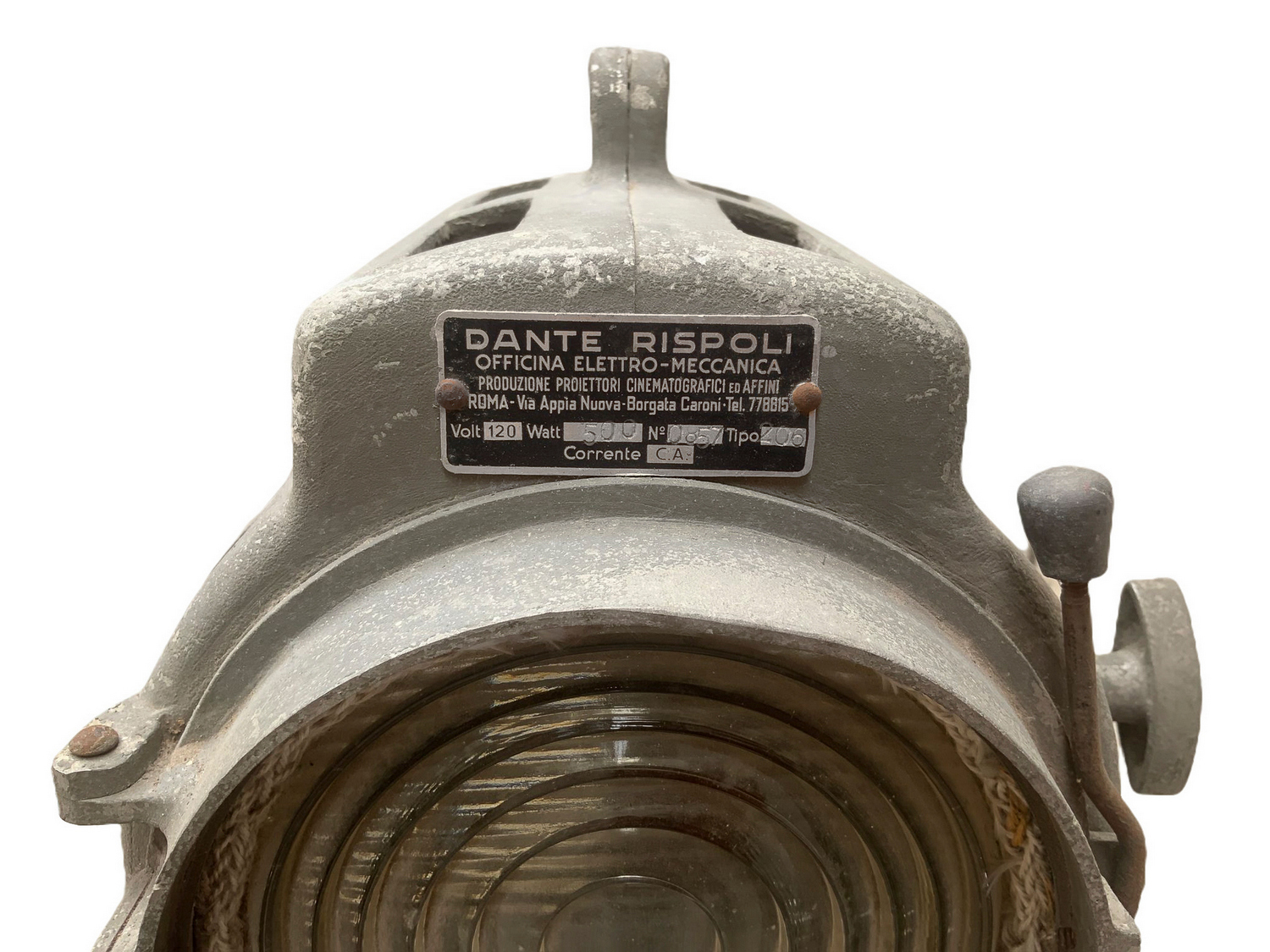 Produzione Dante Ruspoli. Proiettore in metallo con supporto treppiedi in...
