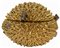 Produzione italiana. Anni ‘70. Compostiera a forma di pesce palla colore oro e dettagli argento.