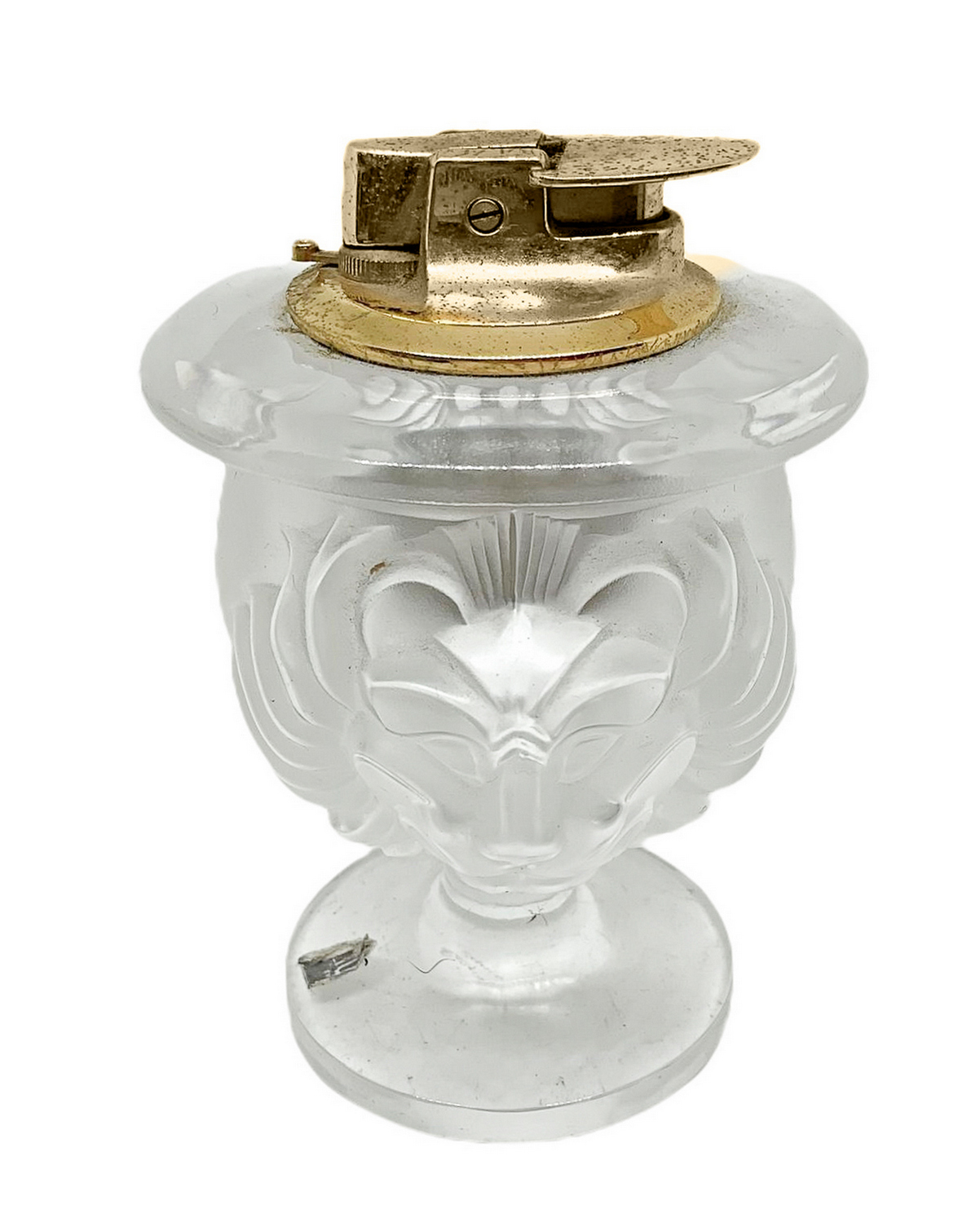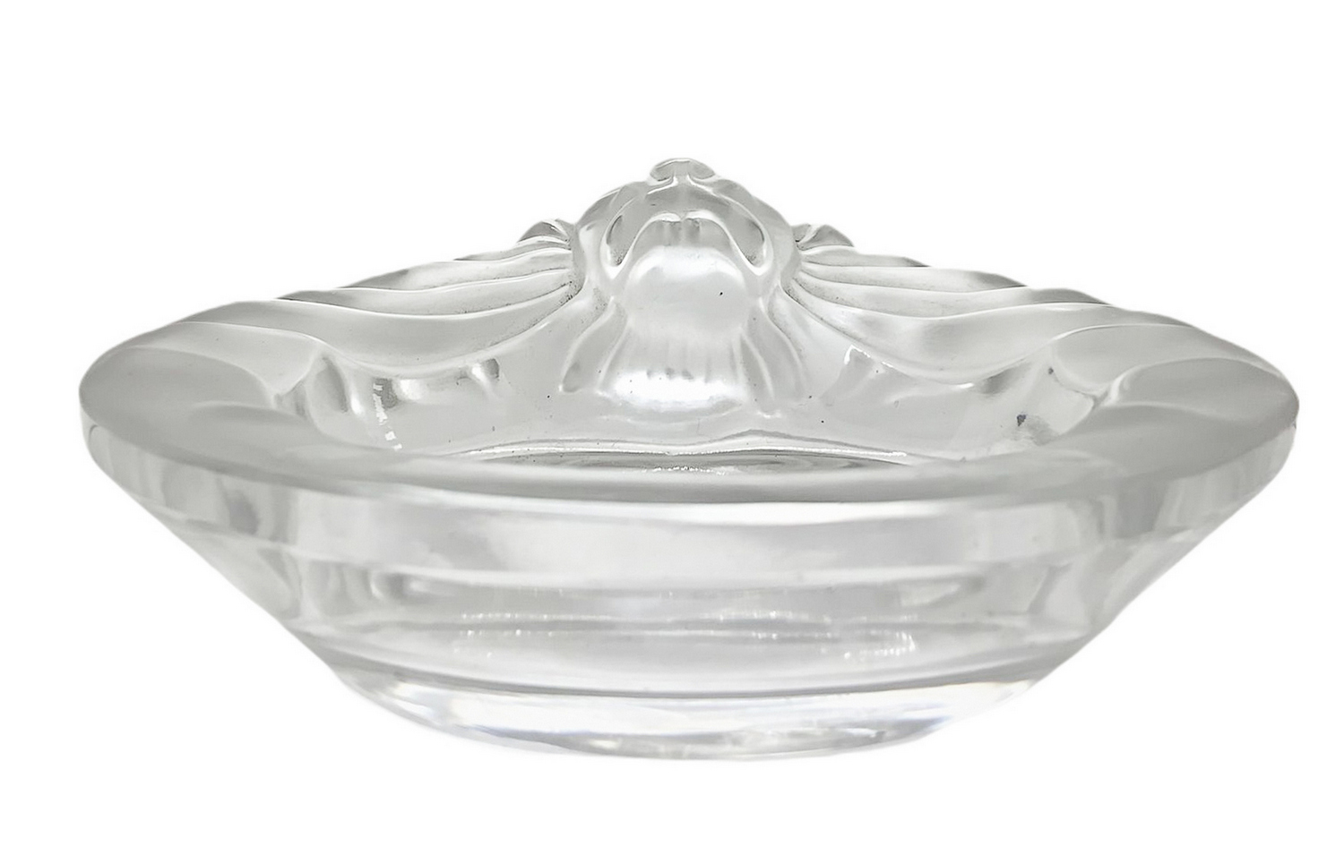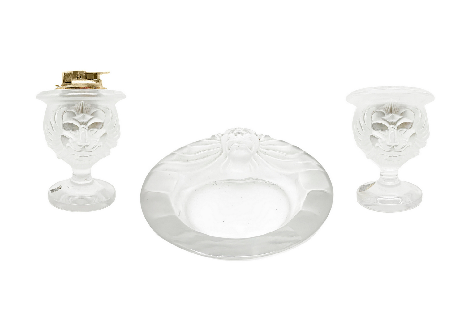 Lalique, Set da fumatore composto da n. 3 pezzi: posacenere, portasigarette e accendino. Francia, XX secolo,
