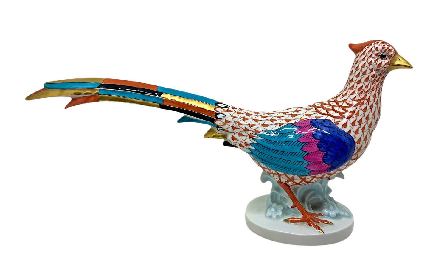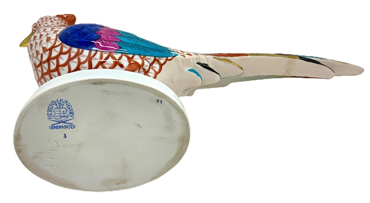 Scultura in porcellana policroma raffigurante fagiano. Sulla base marchio Herend Hvngary Hand painted.