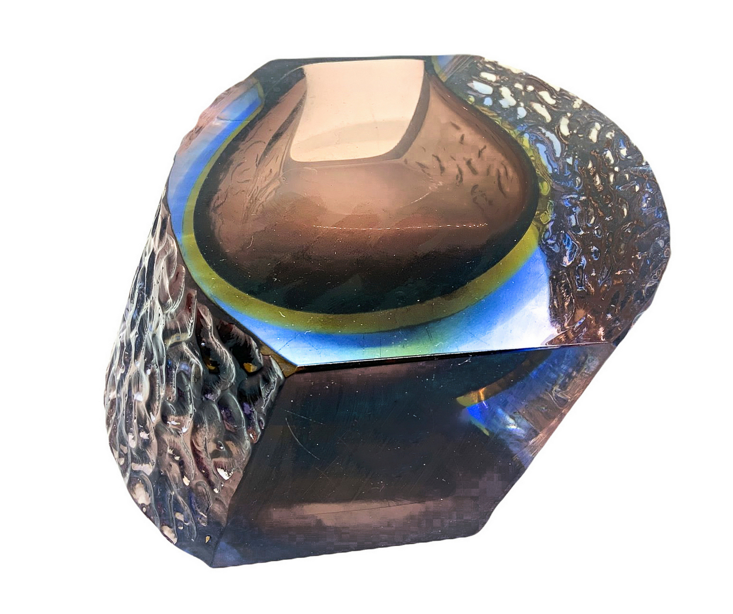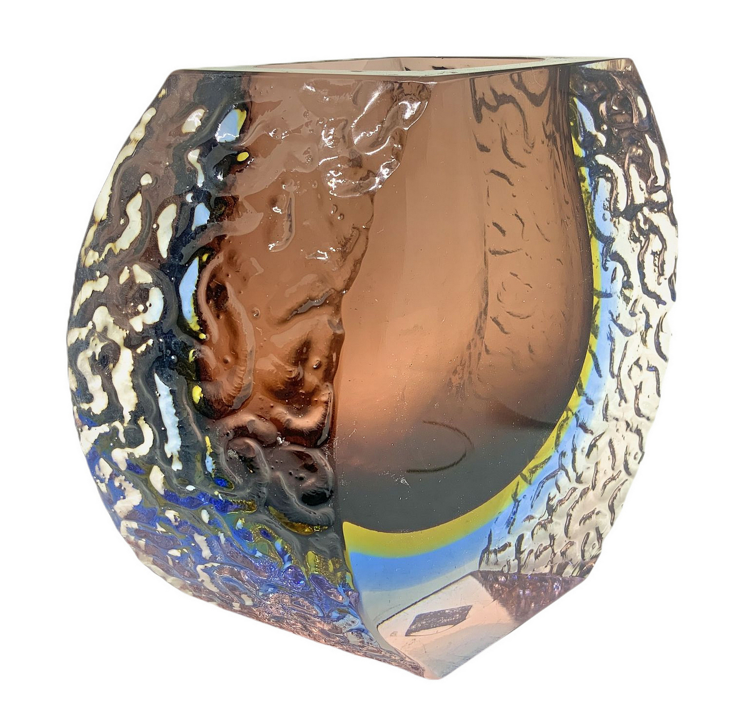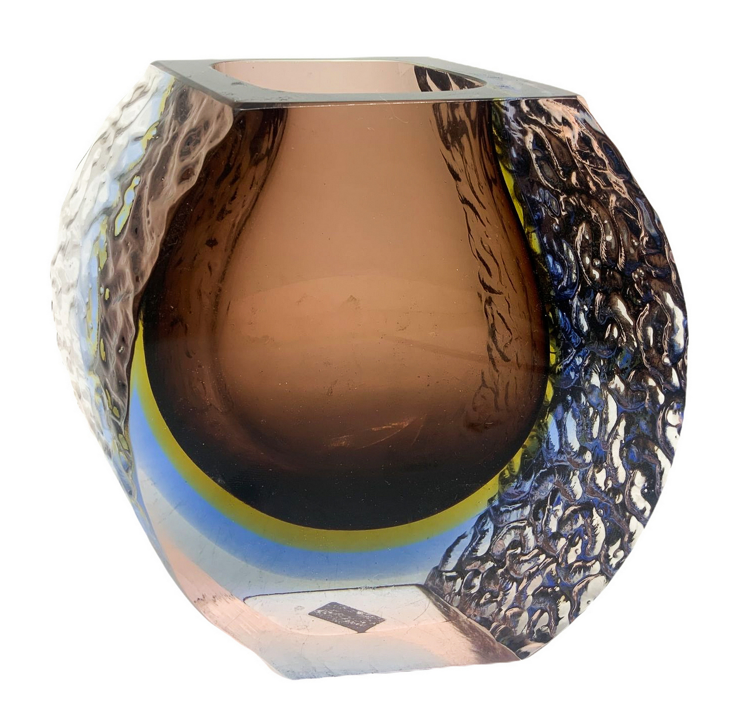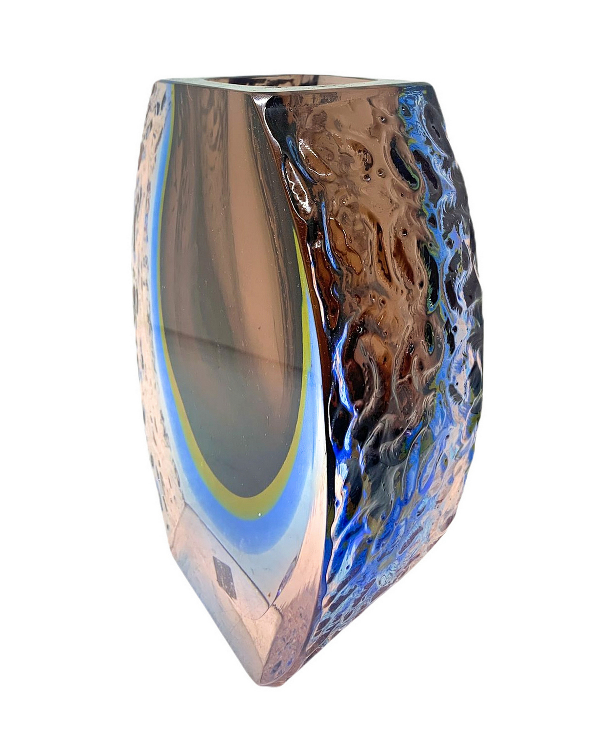 Vaso in vetro di Murano con costolature sui laterali. H cm 17. H cm 17