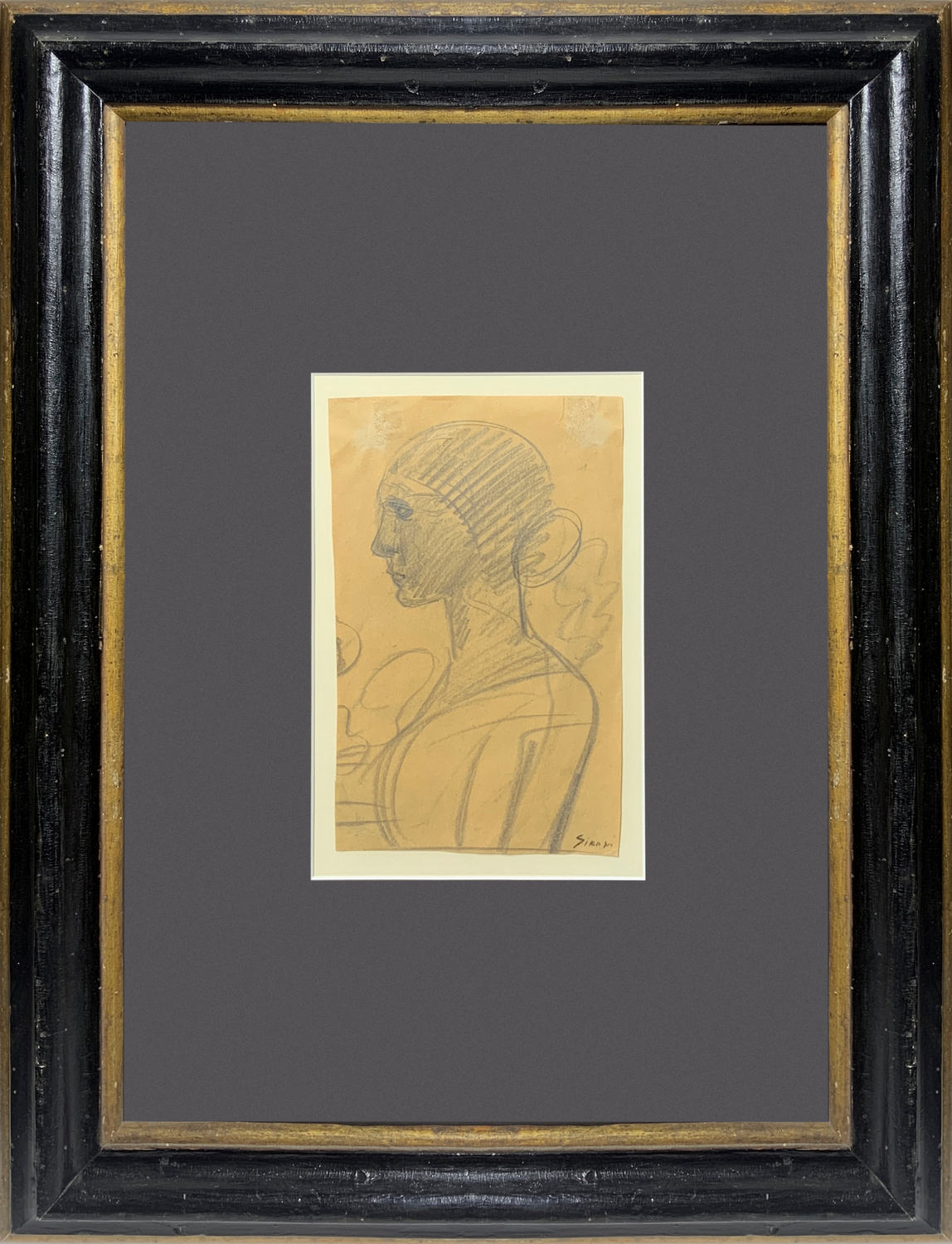 Sironi Mario (Sassari 1985- 1961 Milano) matita su carta in cornice raffigurante Mezzobusto di donna. Firmato in basso a destra