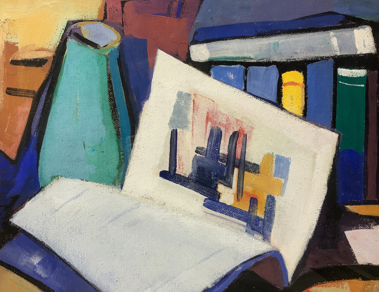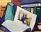 Alicò Giovanni (Catania 1906-1971) Dipinto ad olio su masonite raffigurante natura morta La libreria. Firmato in basso a sinistra Alicò e datato '57