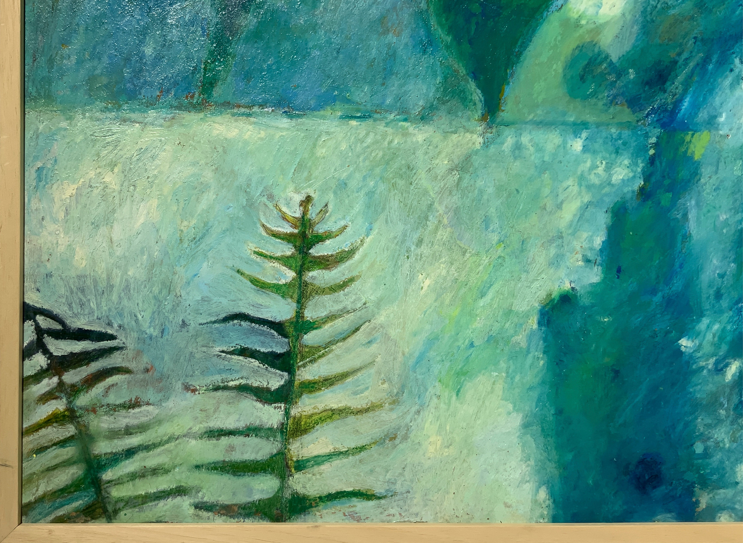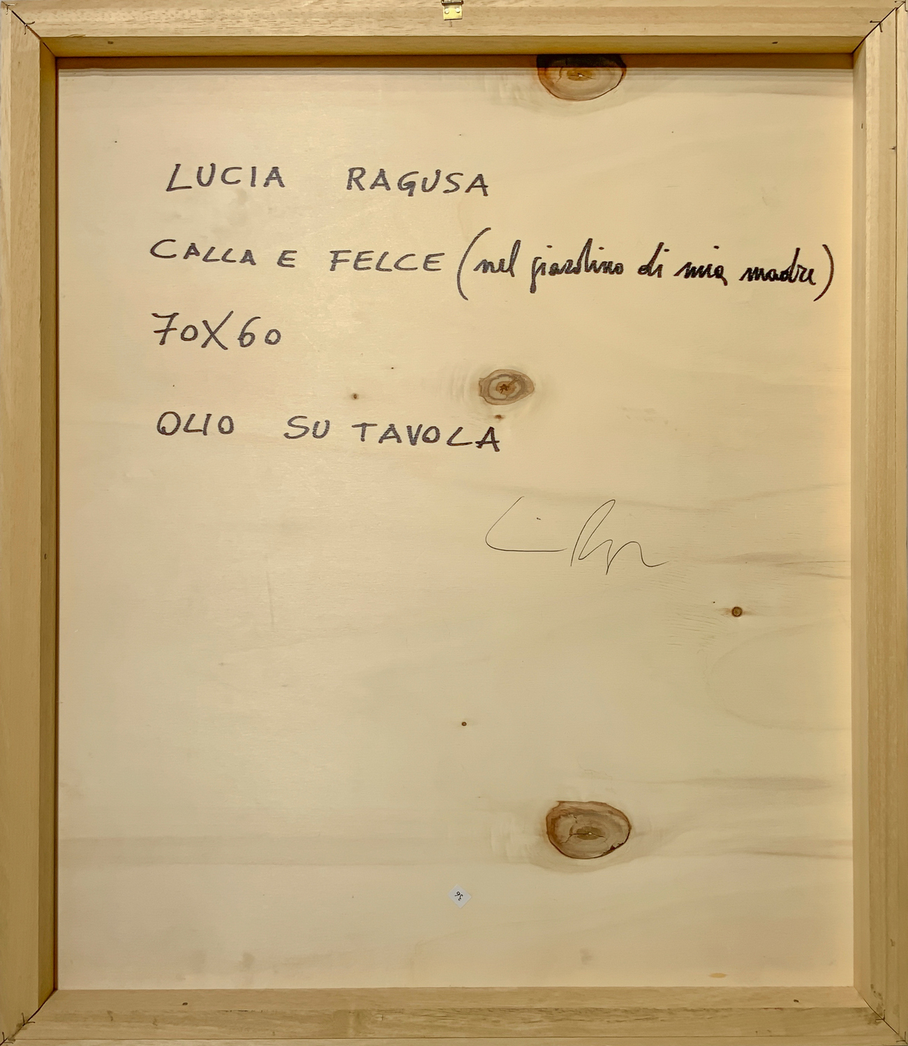 Dipinto ad olio su tavola raffigurante "Calla e felce". Firmato sul retro Lucia Ragusa
