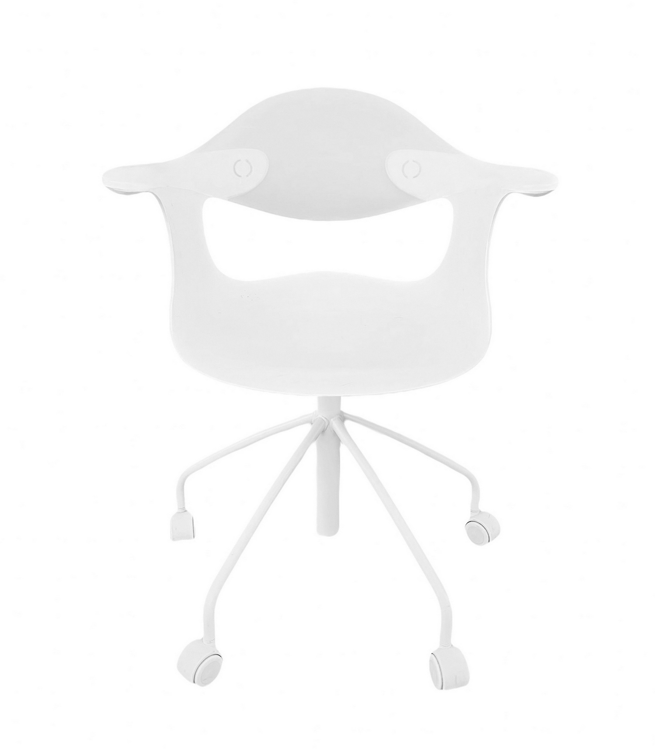 Produzione Driade, Sedia in plastica modello Leaf, disegno Ross LoveGrove. Italia,Sedia con seduta in plastica colore bianco, piede in metallo laccato bianco. Presenta segni di uso.