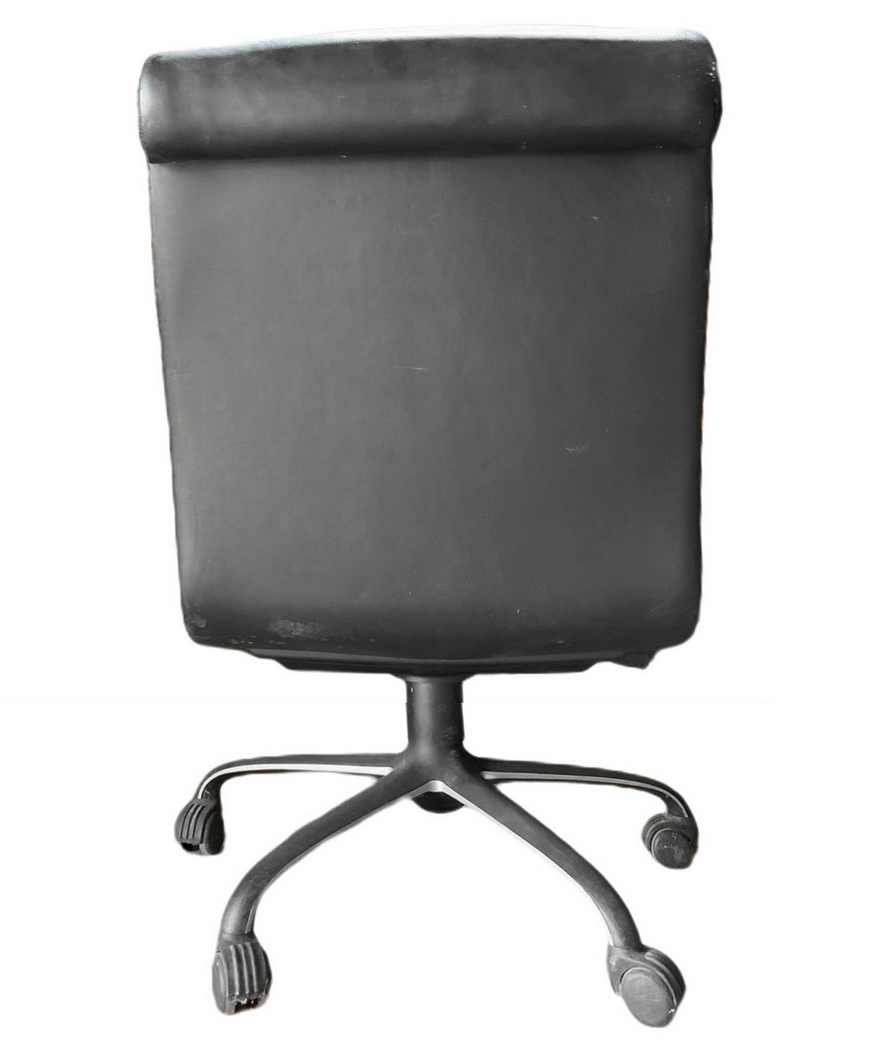 Poltrona Frau, coppia poltrone modello Forum, disegno Design Centre. Anni '90,Struttura del piede in alluminio a cinque razze, rivestimento in pelle color nero.
