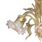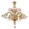 Lampadario. Italia,in vetro di murano colore rosa e pagliesco, otto luci lavorazione a foglie e fiori.