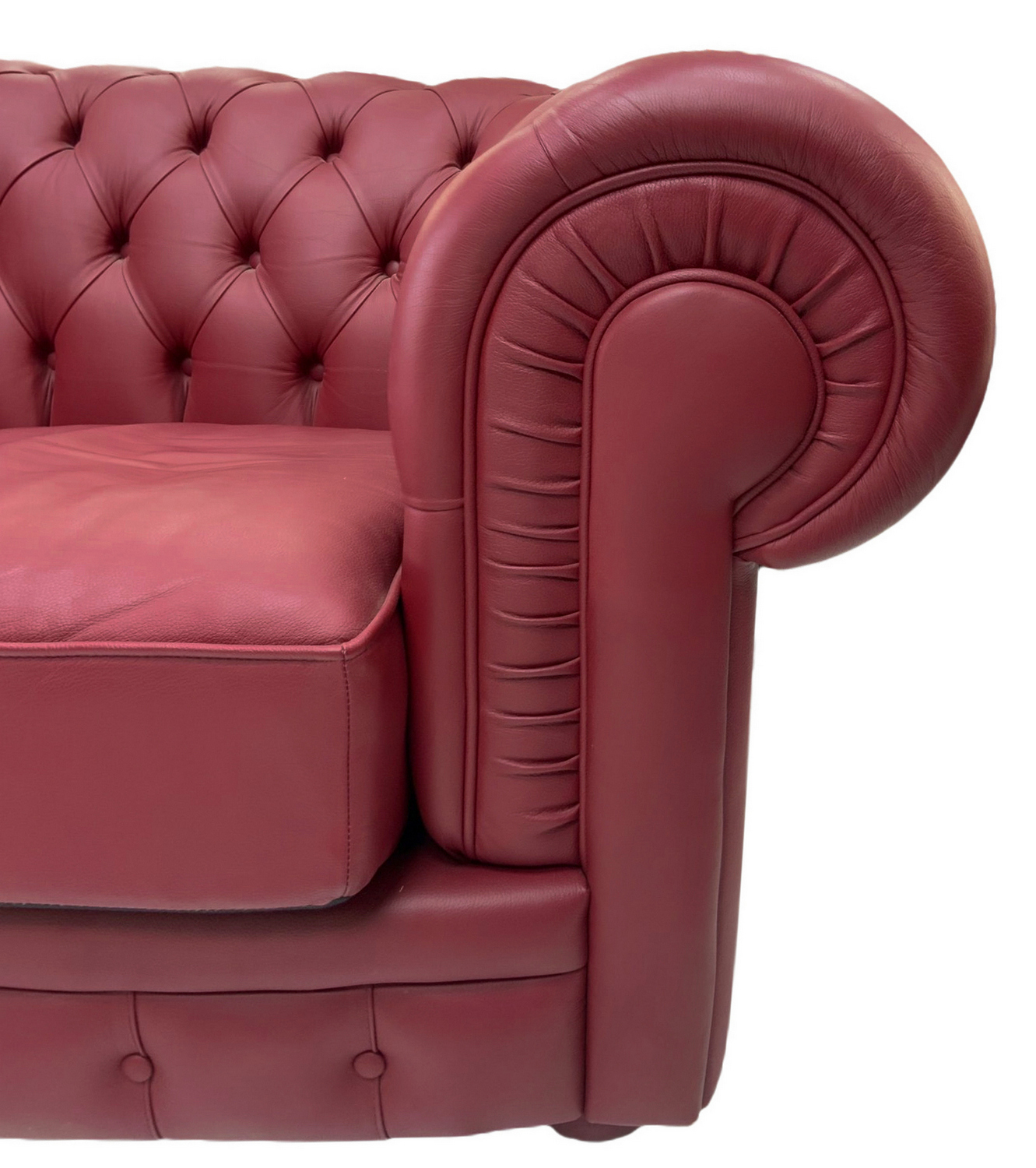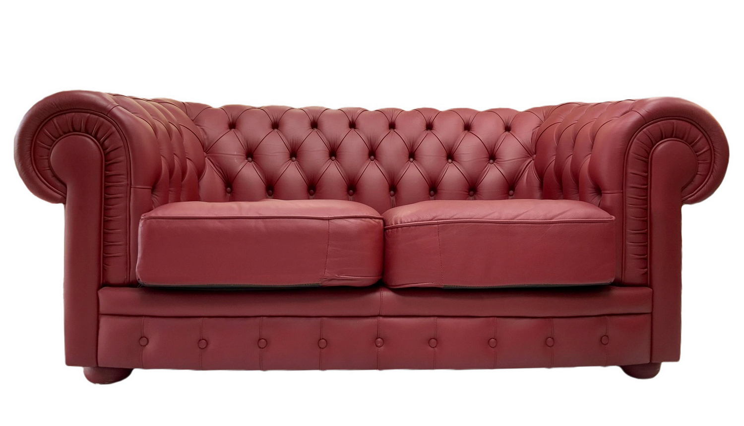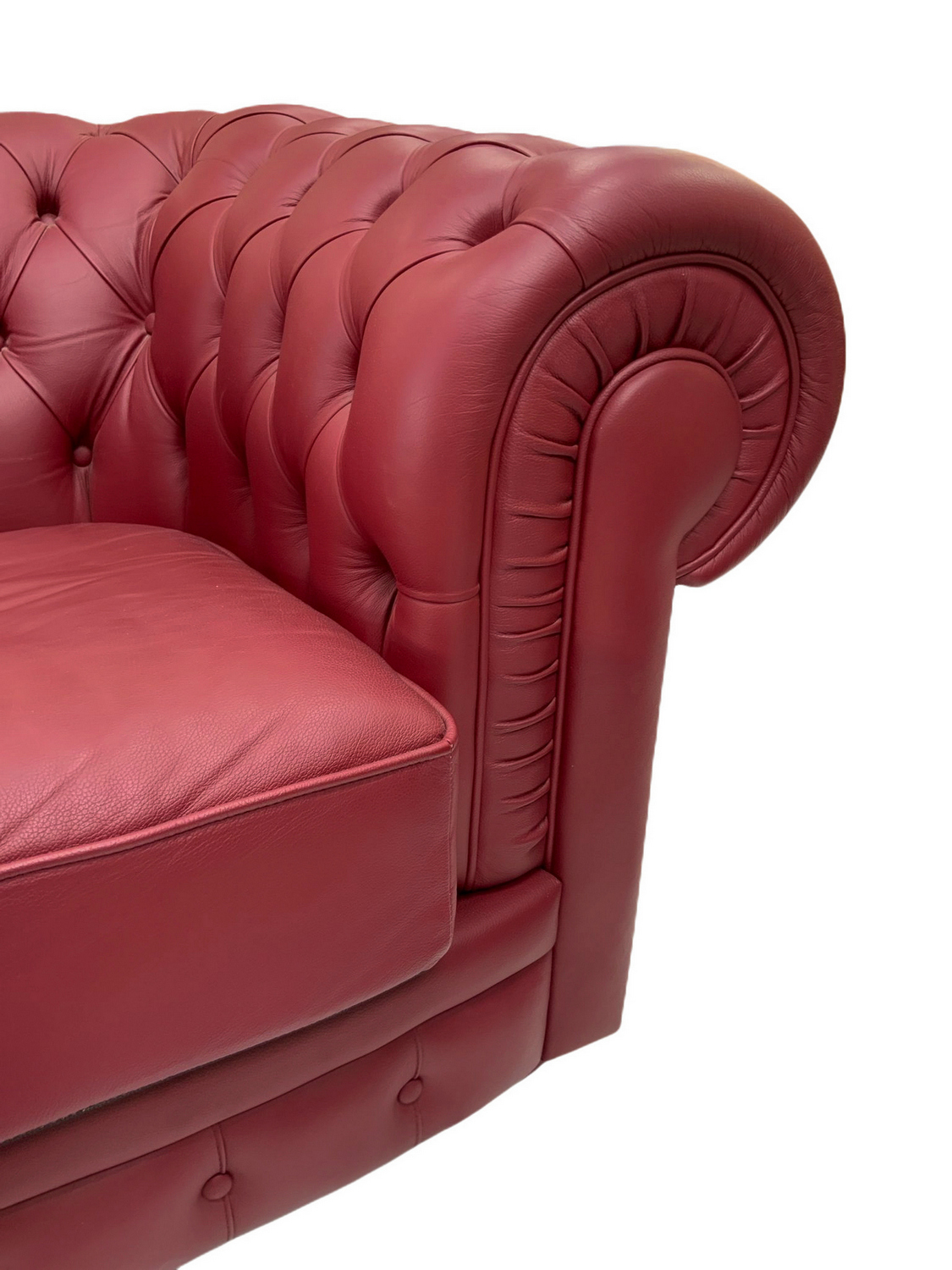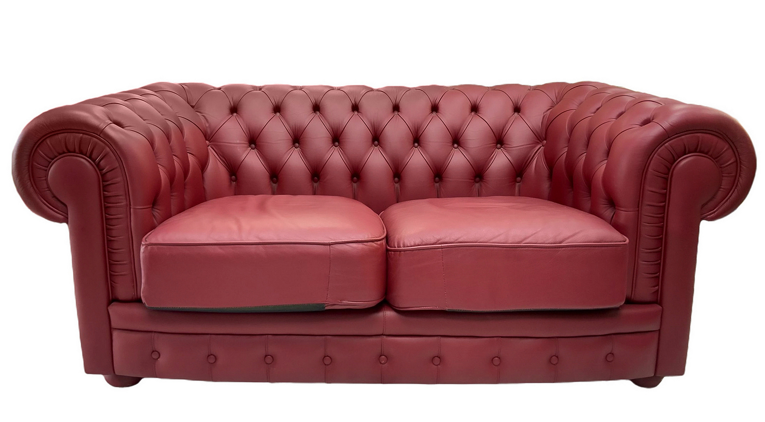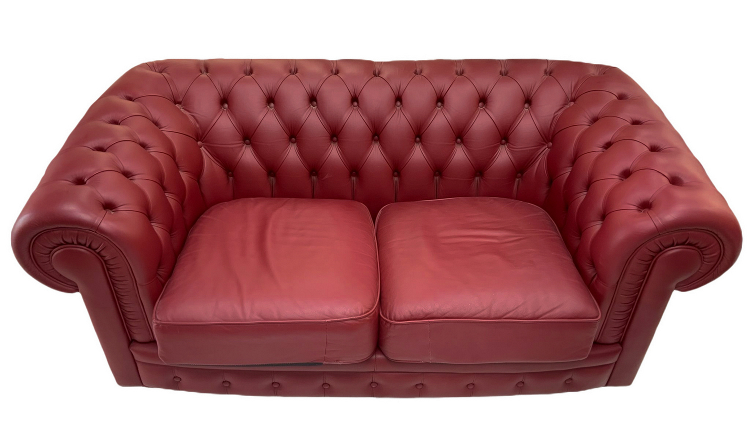 Divano Chester in pelle primo fiore bordeaux, Frau ricondizionato. Cm 178 X...