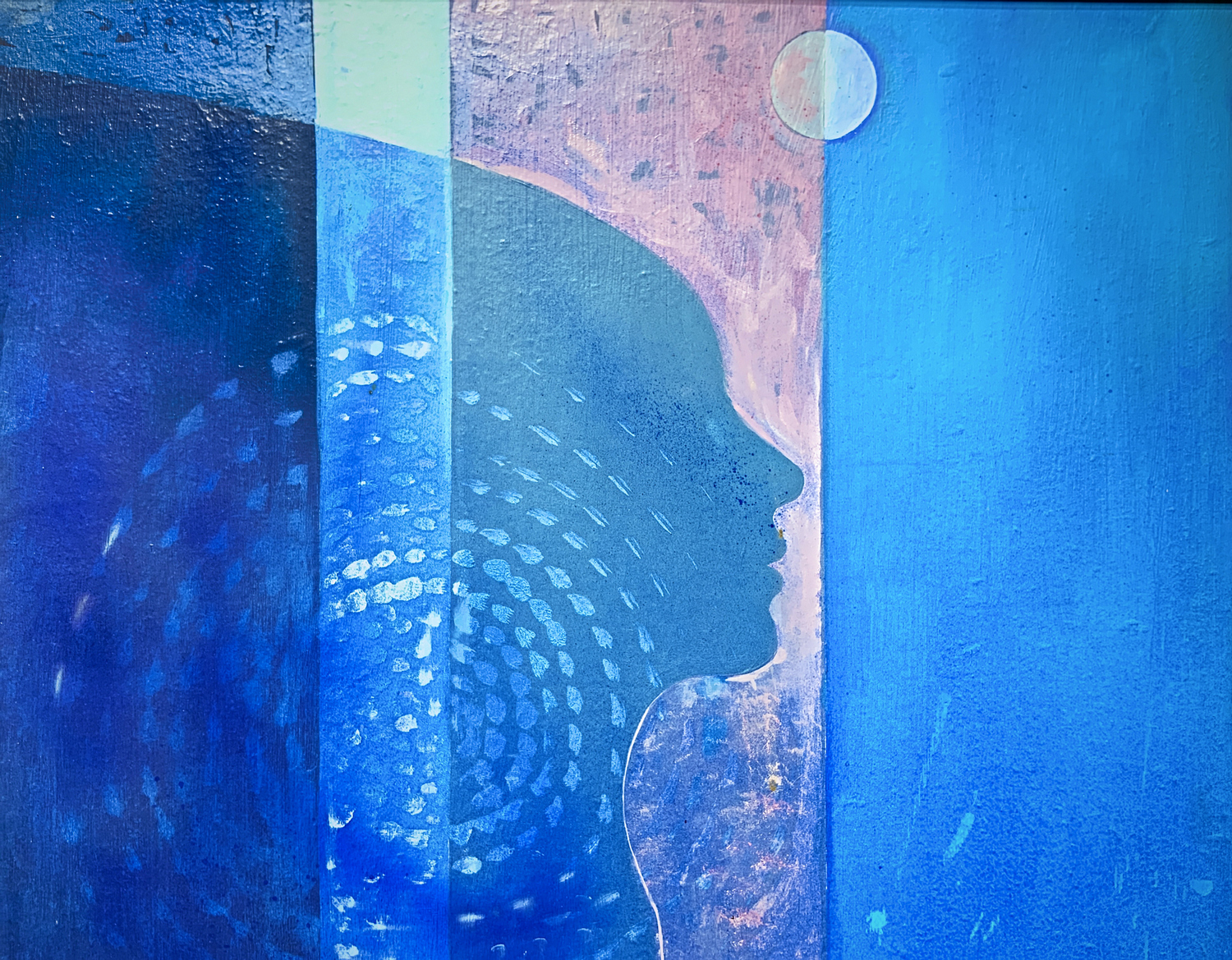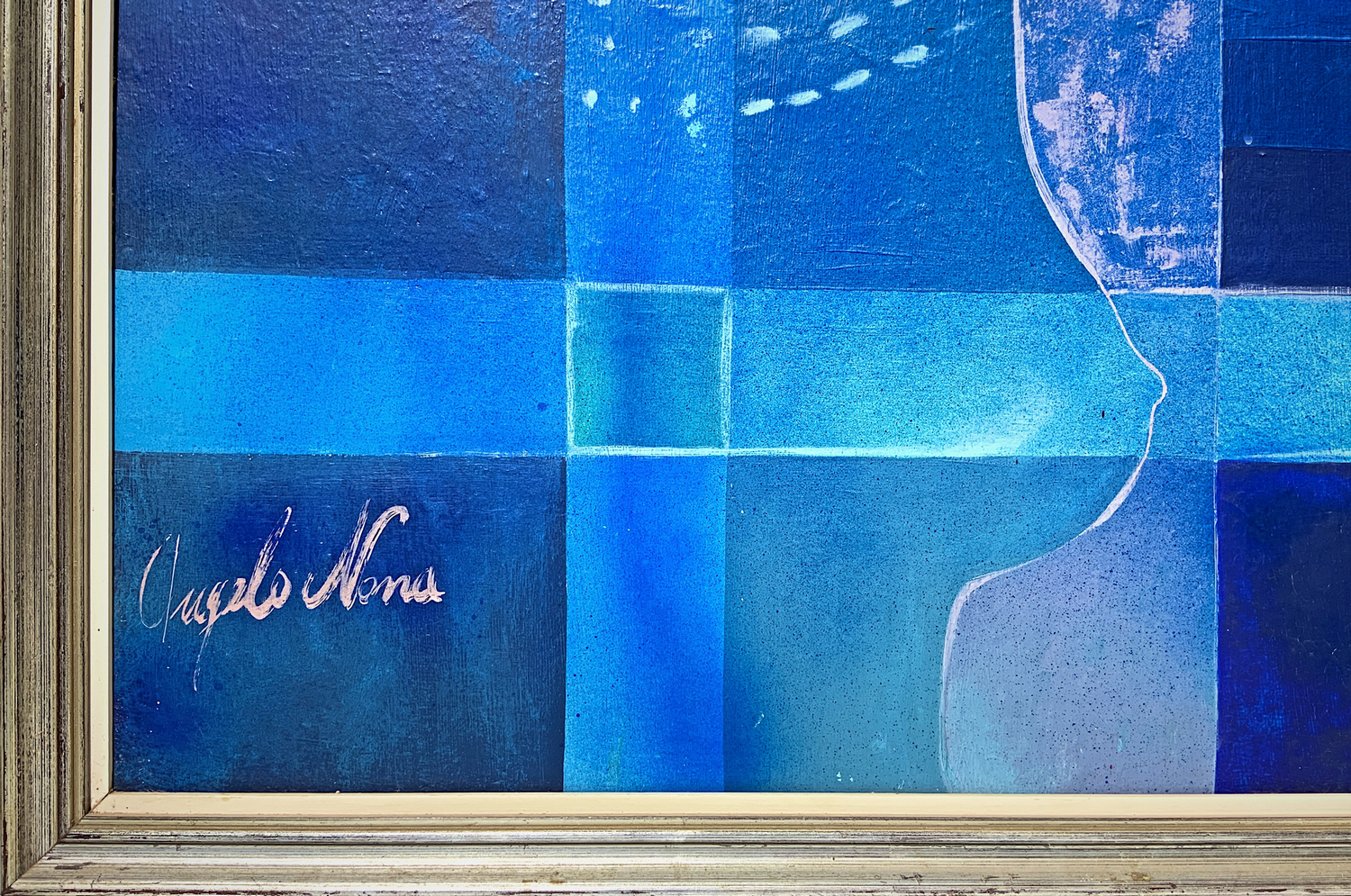 Dipinto ad olio su tela raffigurante volto di donna, Angelo Nona. Anni '70,Angelo Nona (Favara 1937-1975 Catania)