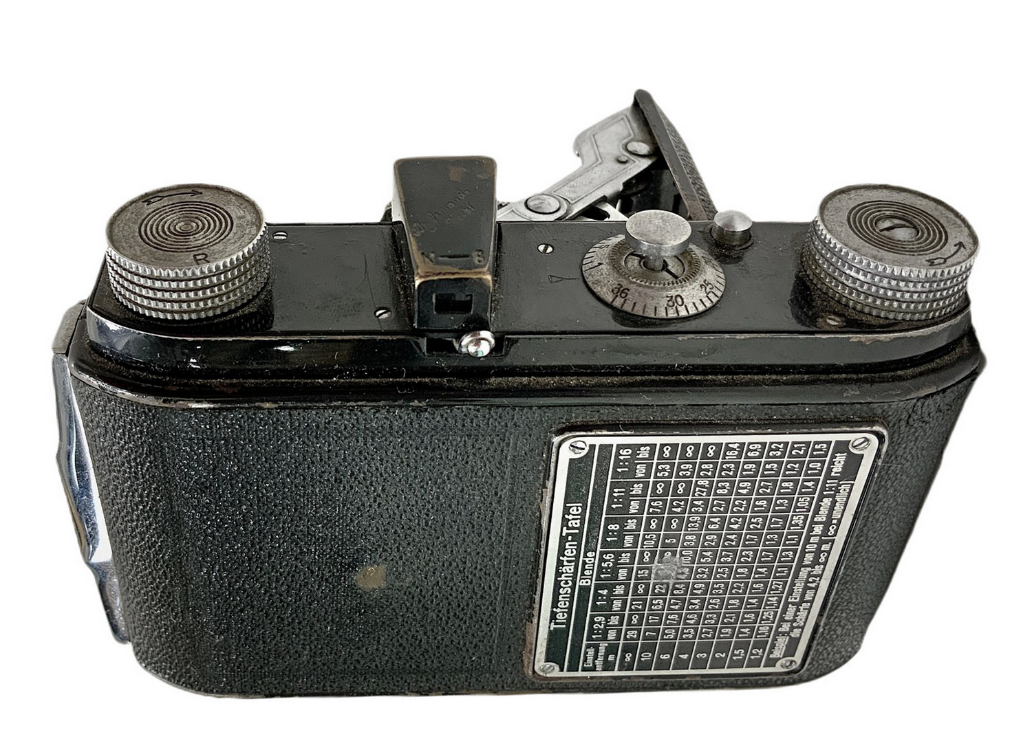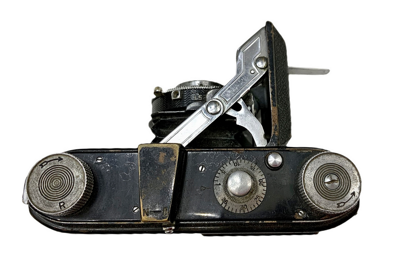 Fotocamera a soffietto Deckel Moncler, modello Compur. Germania,H cm 7....
