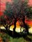 Dipinto ad olio su tela raffigurante paesaggio con alberi al tramonto....
