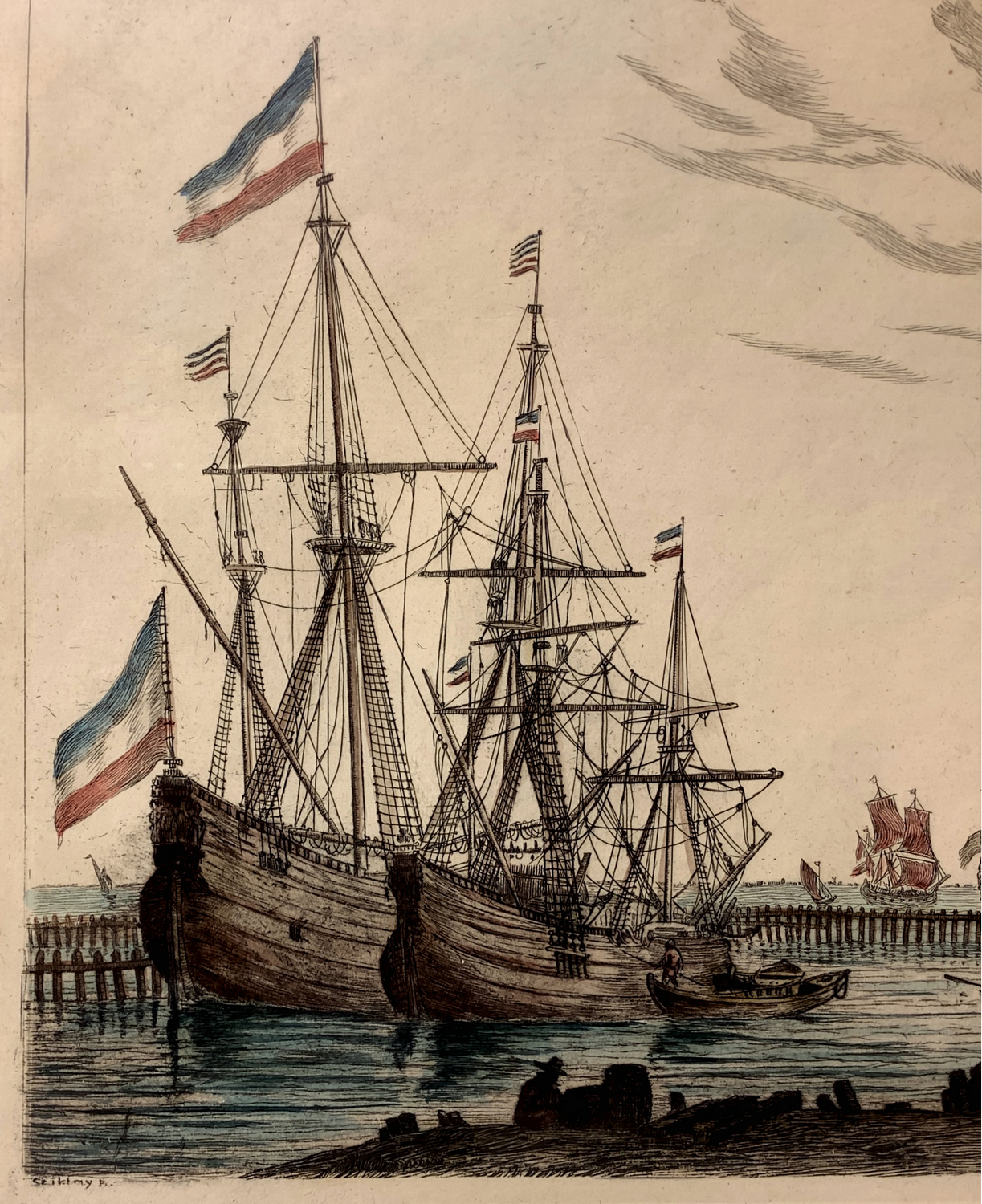 Incisione ad acquaforte colorata a mano. Copia da quattro velieri olandesi...
