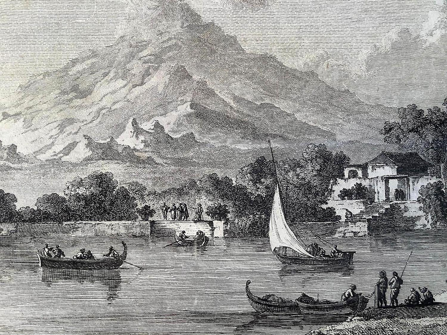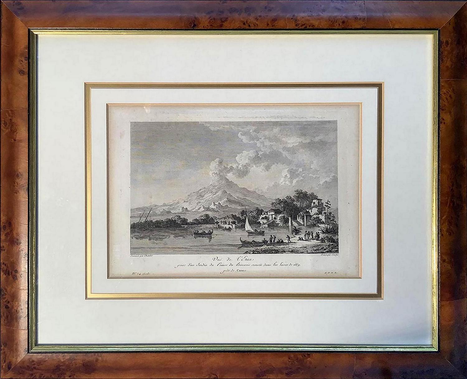 Incisione raffigurante Vue de l’Etna. tratta da Voyage Pittoresque ou description des Royaumes de Naples et de Sicilie, Saint-Non. Prima edizione 1785. A.P.D.R. N° 34 Sicilie. In bella cornice di radica.