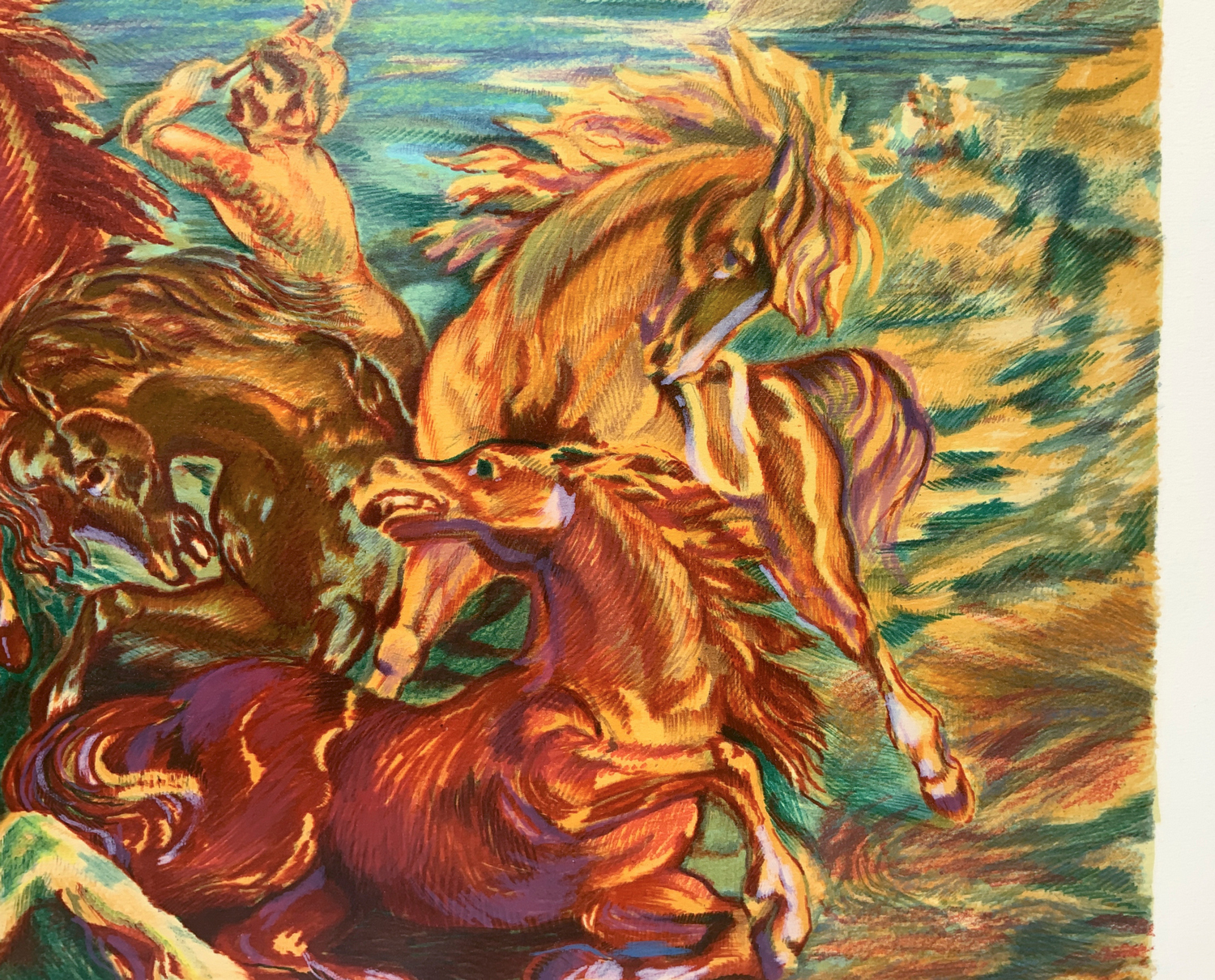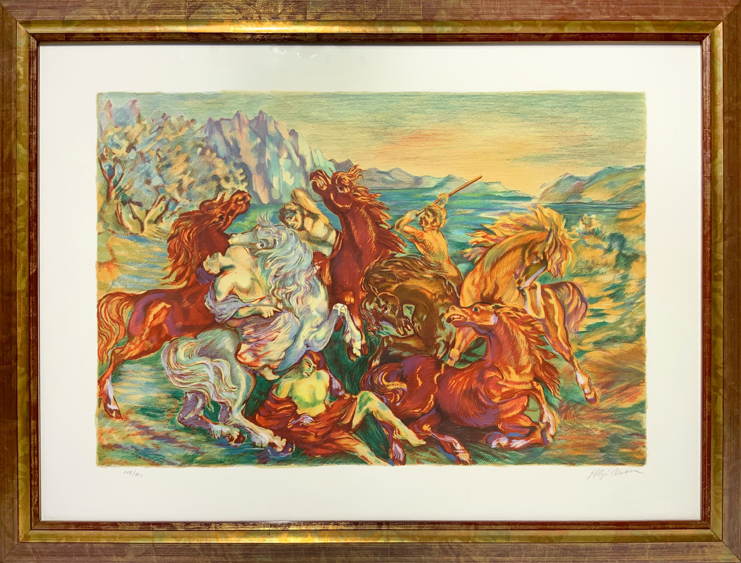 Litografia di Aligi Sassu, 118/150. Cm 53 x 86, in cornice cm 63 x 85. . Aligi Sassu (Milano,1912 – Pollença 2000)