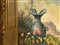 Olio su tela raffigurante natura morta di frutta con paesaggio. Firmato...