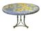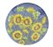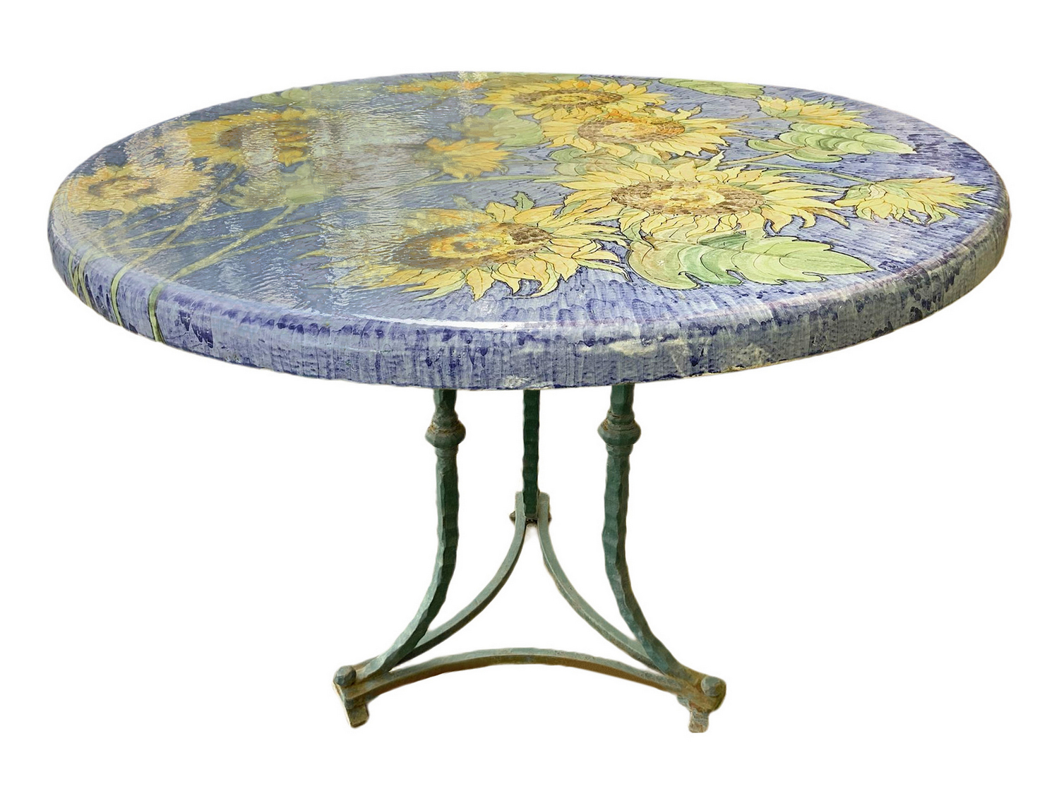 Tavolo rotondo in pietra lavica decorato a ceramica policroma con girasoli al...