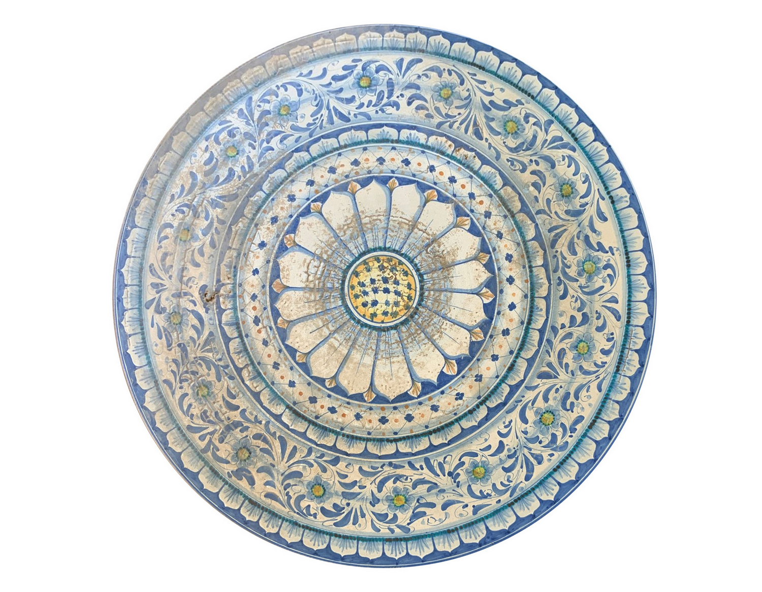 Tavolo rotondo in pietra lavica e 4 sedie. Decorato a ceramica policroma con...