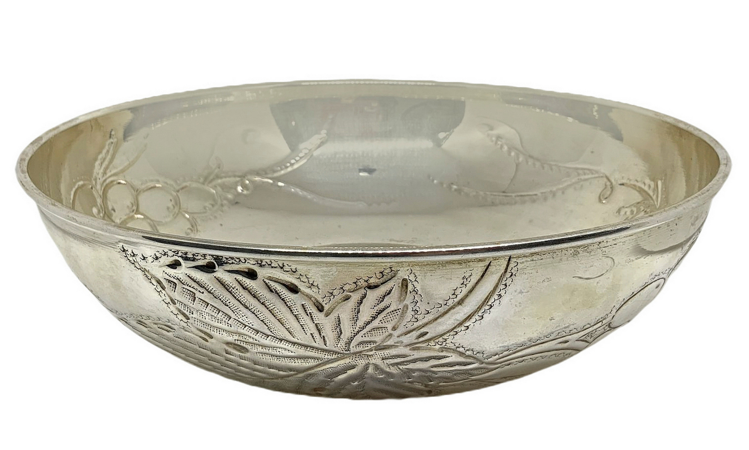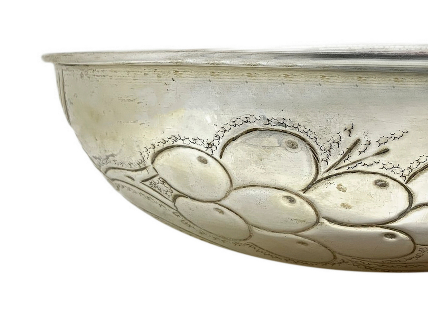 Lot 343 | Ciotola in argento sbalzata. con decorazioni di uva cesellata a mano gr.345...