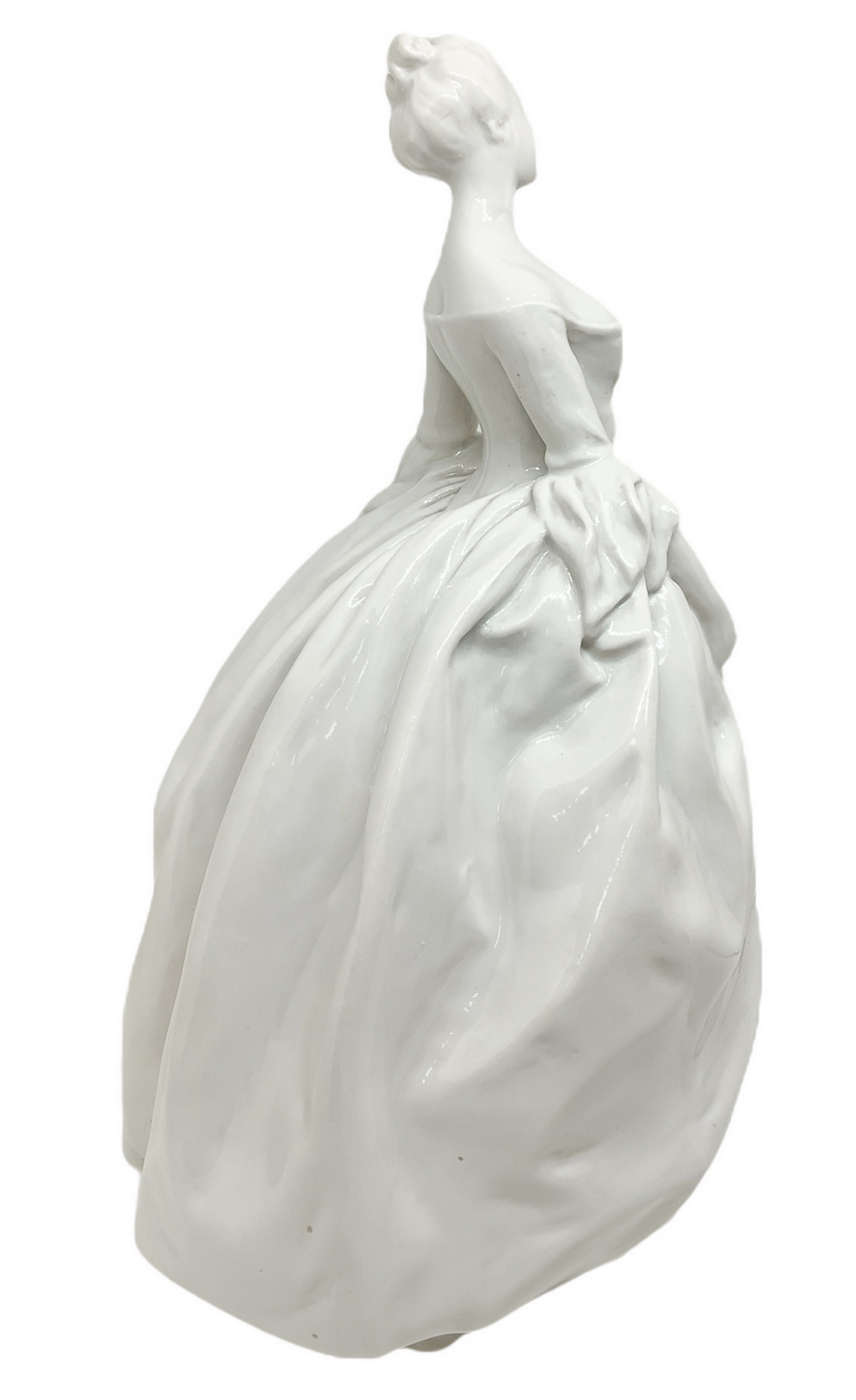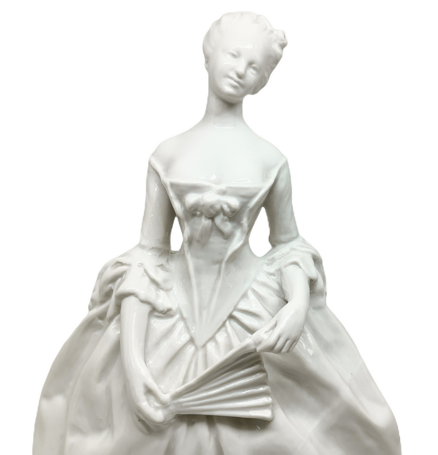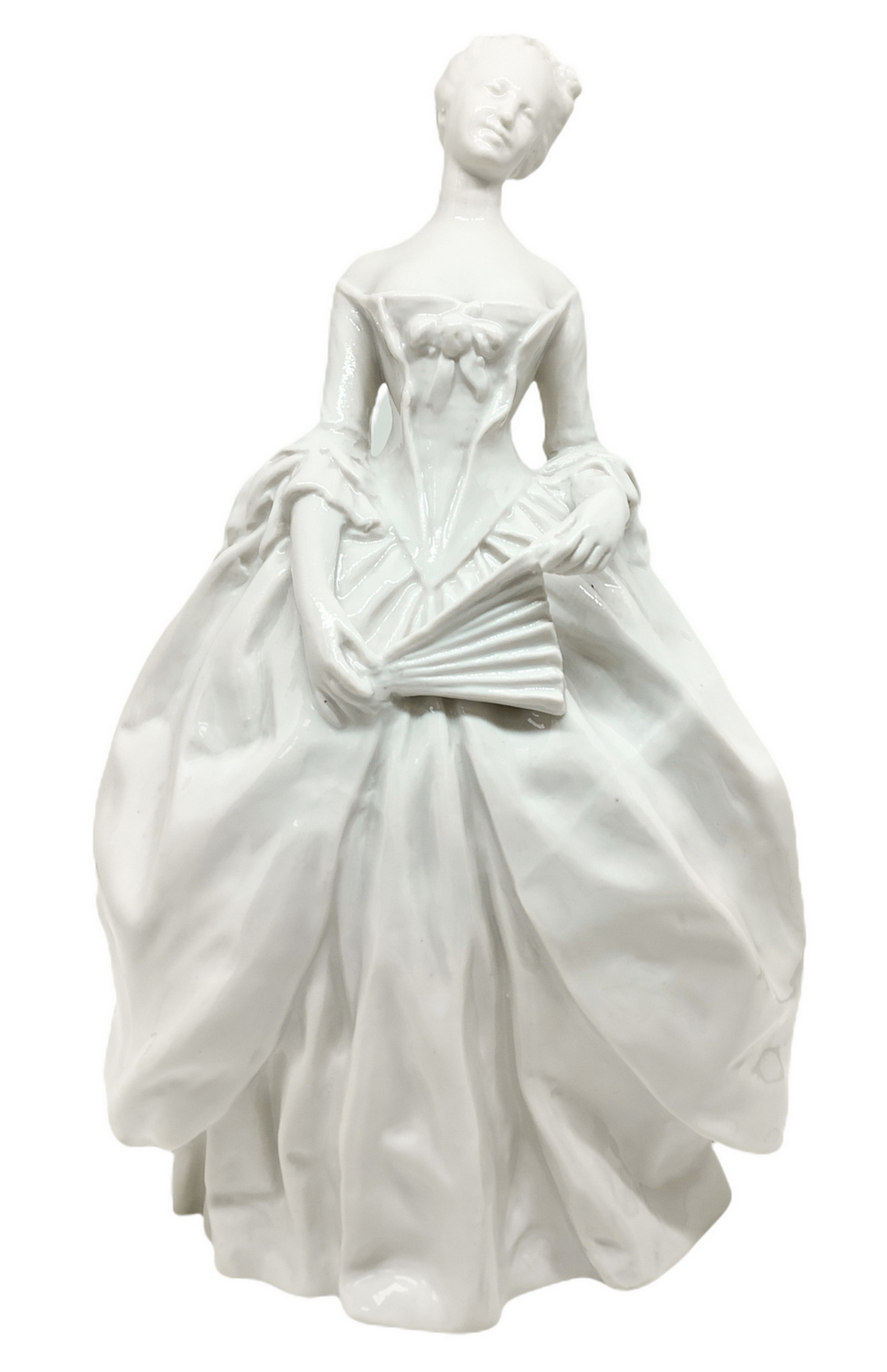 Porcellana di Capodimonte bianca raffigurante dama con ventaglio. XX secolo.