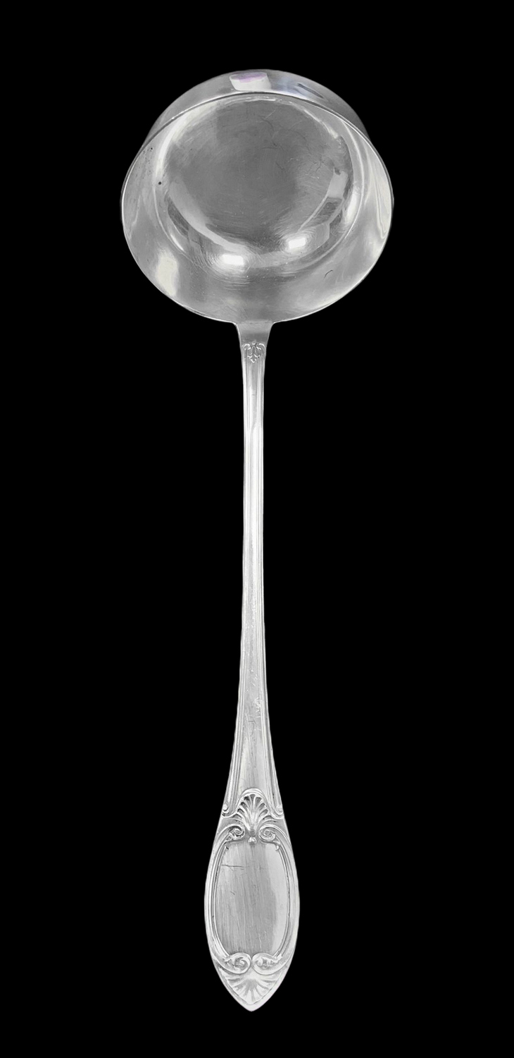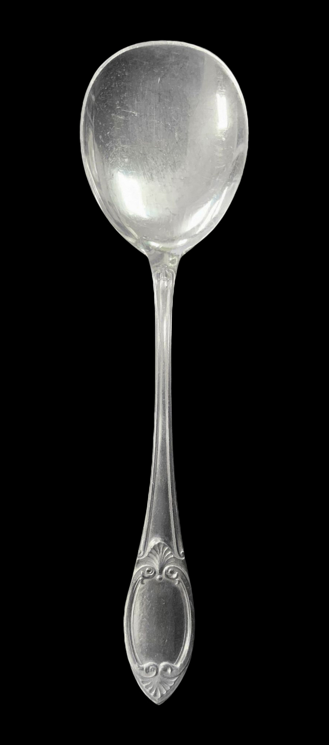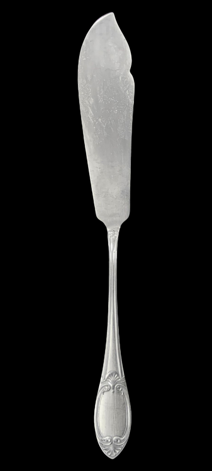 Servizio di posate in argento, Freni. Composto da: 24 forchette grandi (Kg 1.7), 12 cucchiai grandi (Gr 945), 12 forchette pesce (Gr 530), 12 coltelli pesce (Gr 630), 11 forchette frutta (Gr 430), 12 cucchiaini da caffè, 12 cucchiaini da tè, 12 cucchiaini da dolce (peso complessivo kg 1), 12 coltelli grandi, 12 coltelli frutta più cinque pezzi da portata (Gr 750)