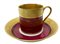 Servizietto caffè tete a tete in porcellana Aofi Porzellan Manufaktur Bavaria. Con decorazione in oro e rosso, composto da due tazzine con piattini e vassoio rettangolare.