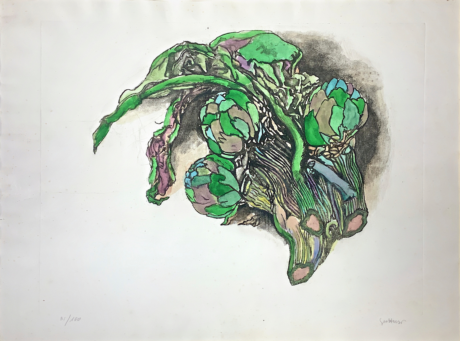 Guttuso, incisione ad acquaforte raffigurante carciofi. N. 31 su 100, datata 79.