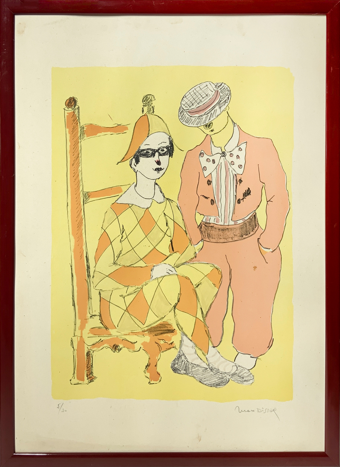 Max Dissar (1908-1993), litografia raffigurante personaggi circensi, 5/50. Firmata in basso a destra