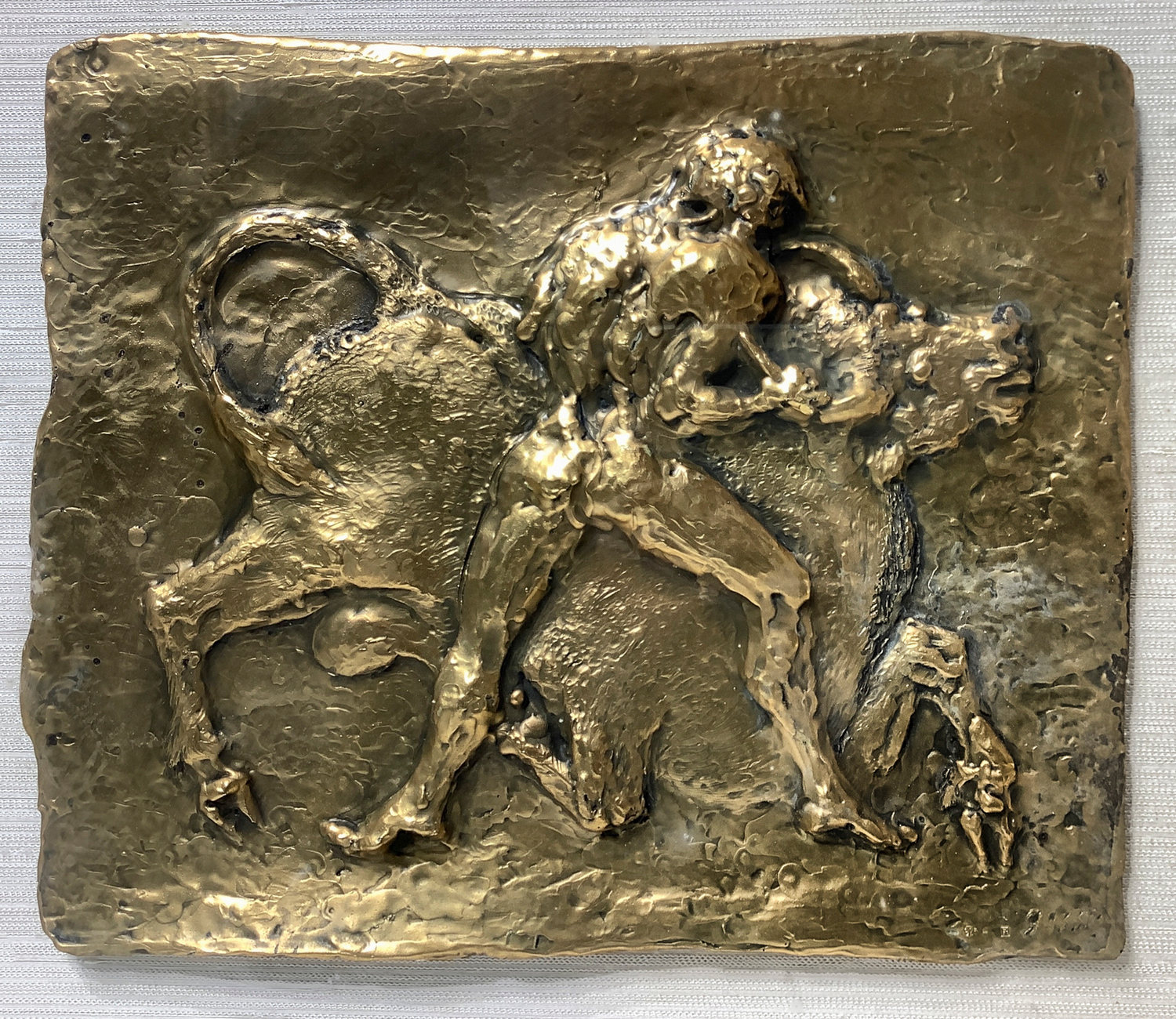 Bassorilievo di Aligi Sassu(Milano 1912-Pollenca 2000) su lastra di argento...