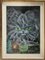 Dipinto a pastello raffigurante gatto con fiori, firmato in basso a destra...