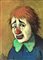 Dipinto ad olio su tavoletta raffigurante volto di Clown. firmato in basso a...