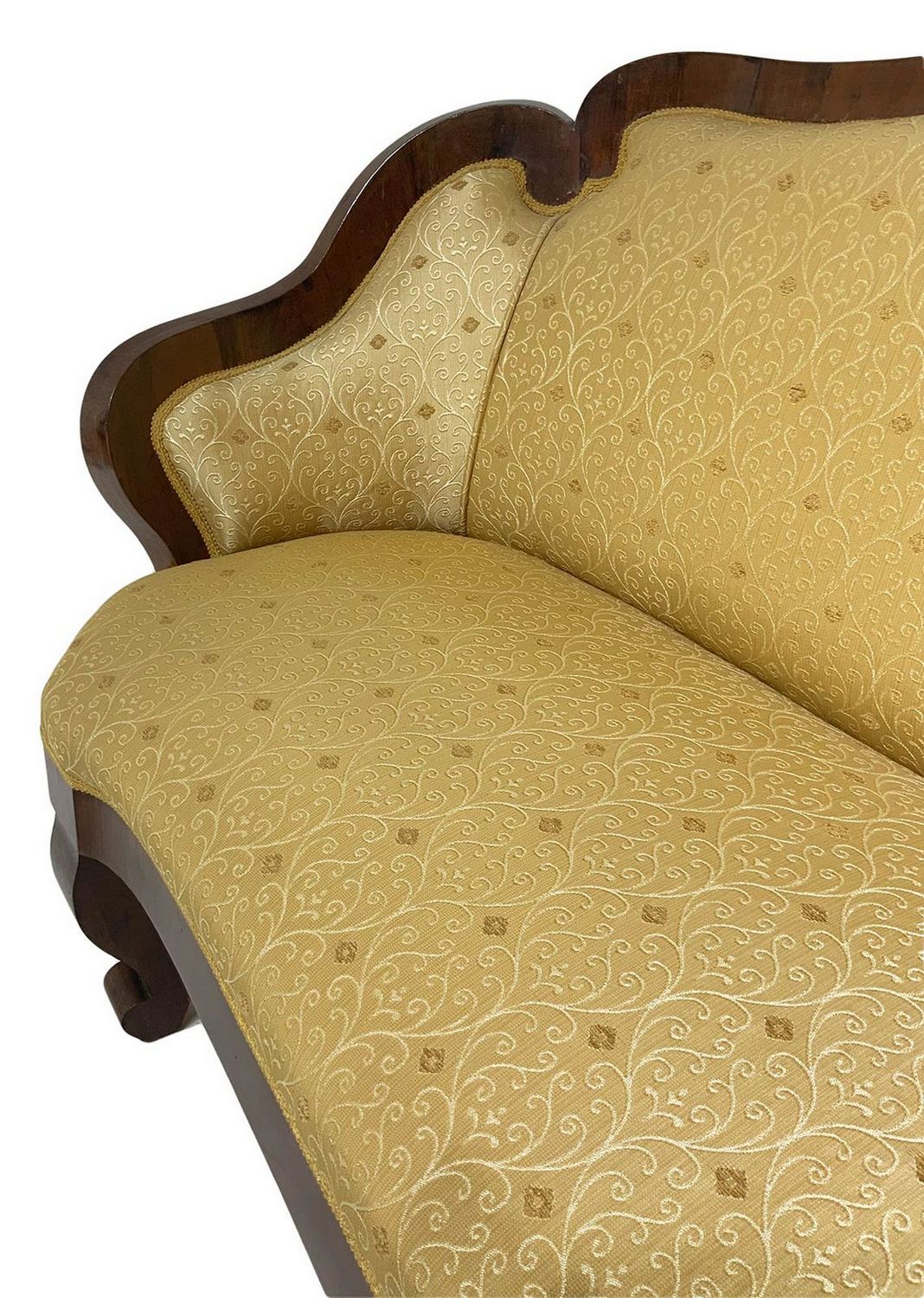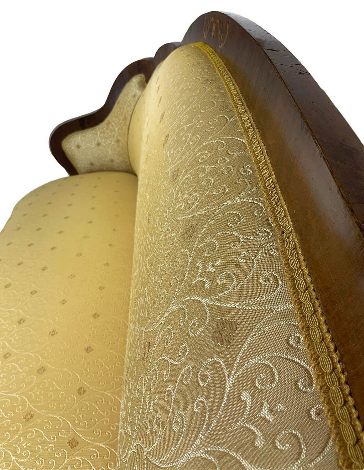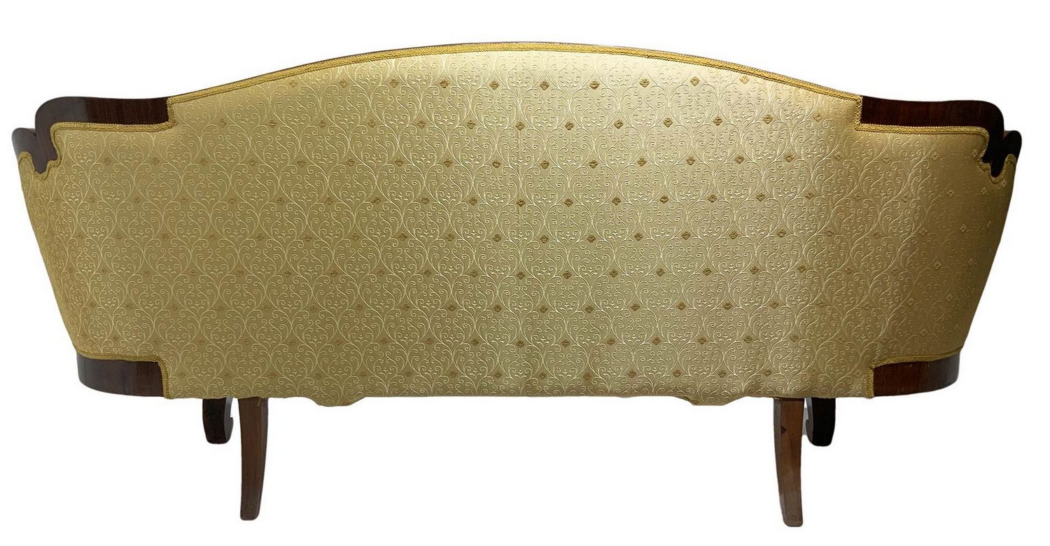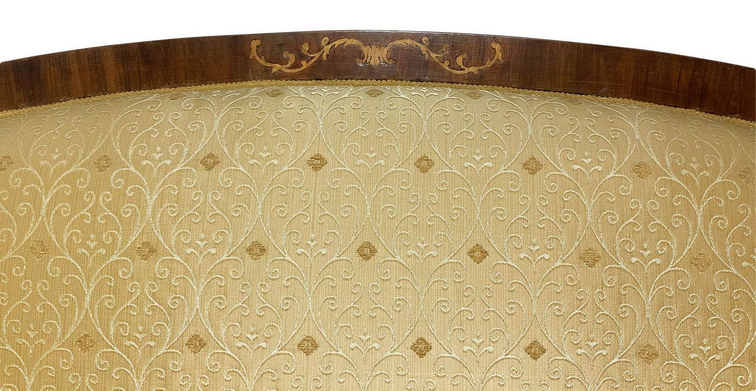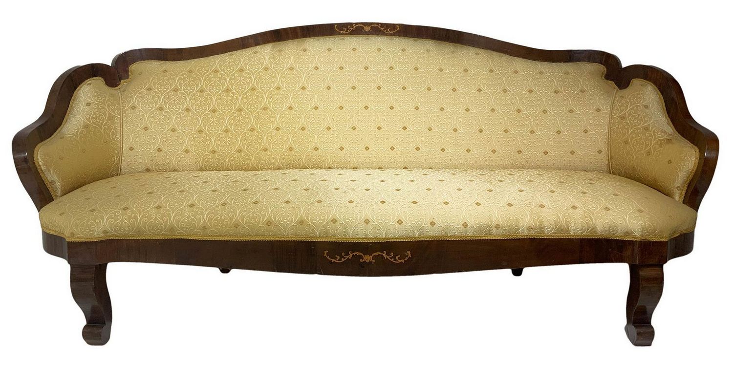 Divano in legno di palissandro con intarsi centrati alla base della seduta e alla spalliera. Luigi Filippo, XIX secolo.