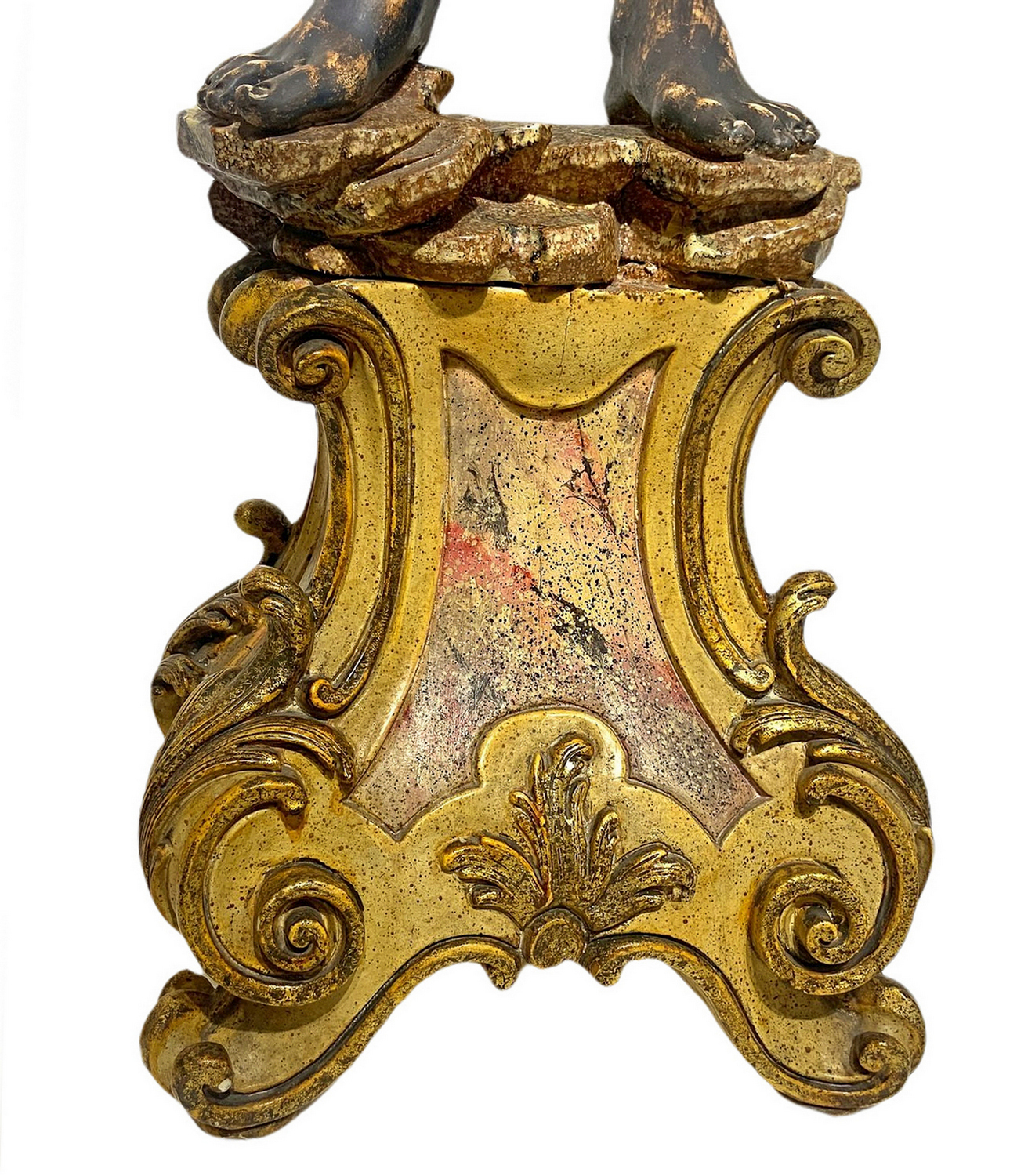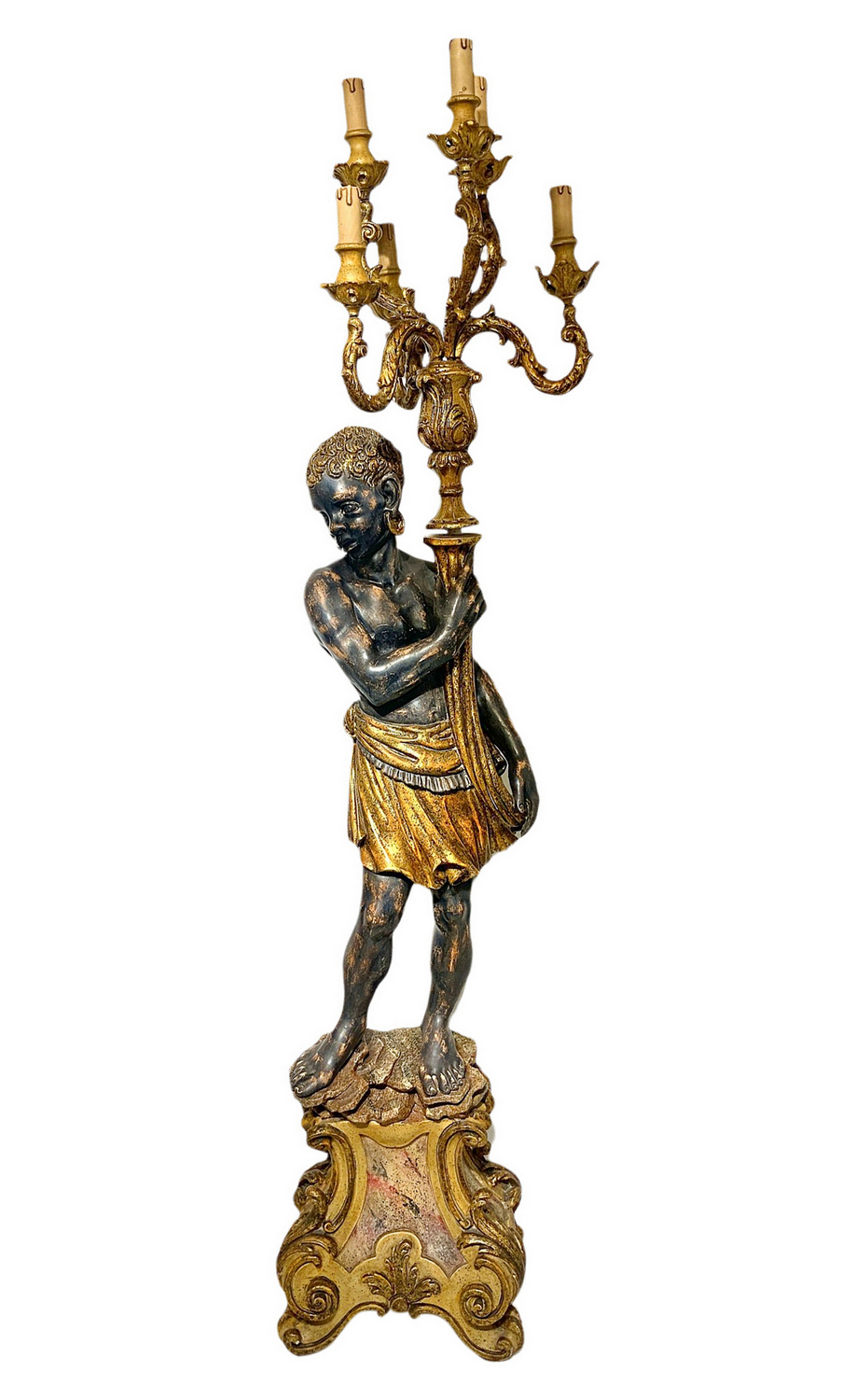 Grande candeliere da terra in legno raffigurante moro. Candeliere a 6 luci. H...