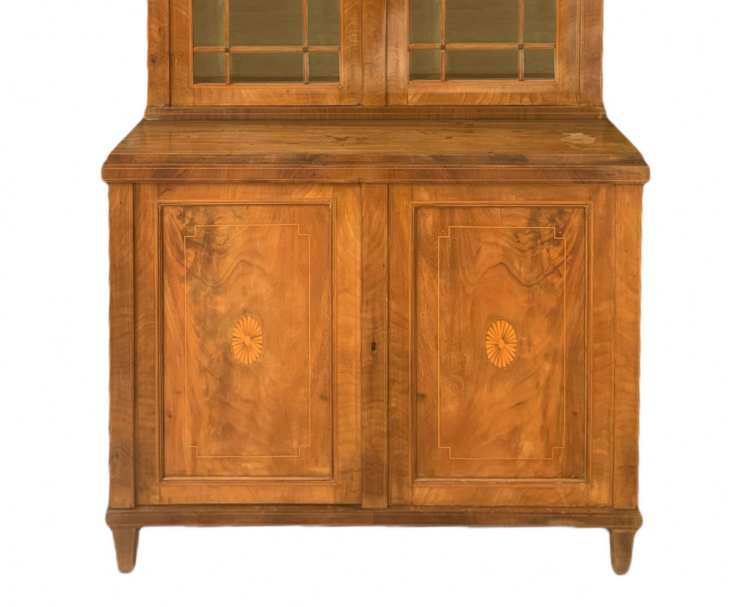 Credenza a due ante a vetri e due sportelli alla base in legno