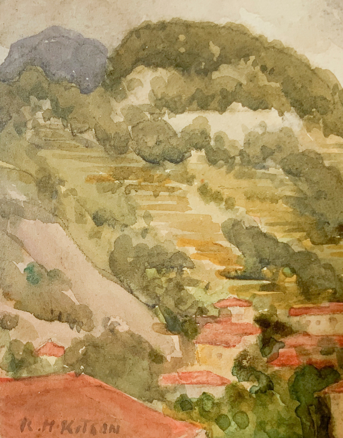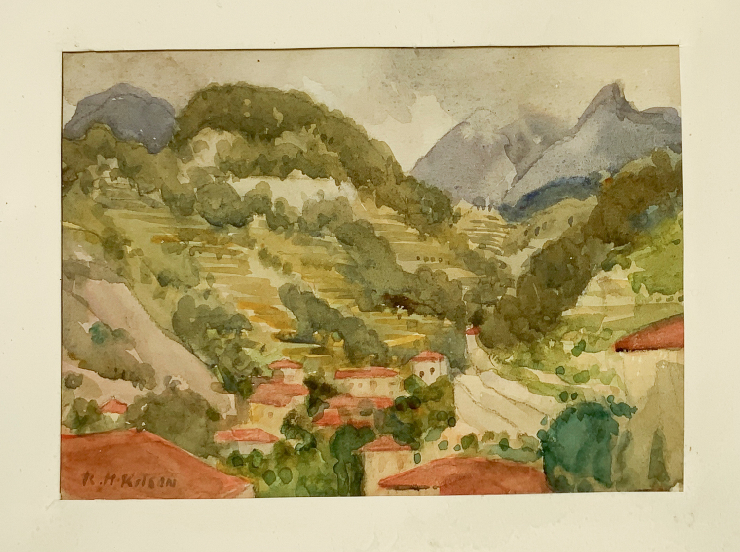 R. H. Kitson acquerello raffigurante dintorni di Taormina. Firmato in basso a...