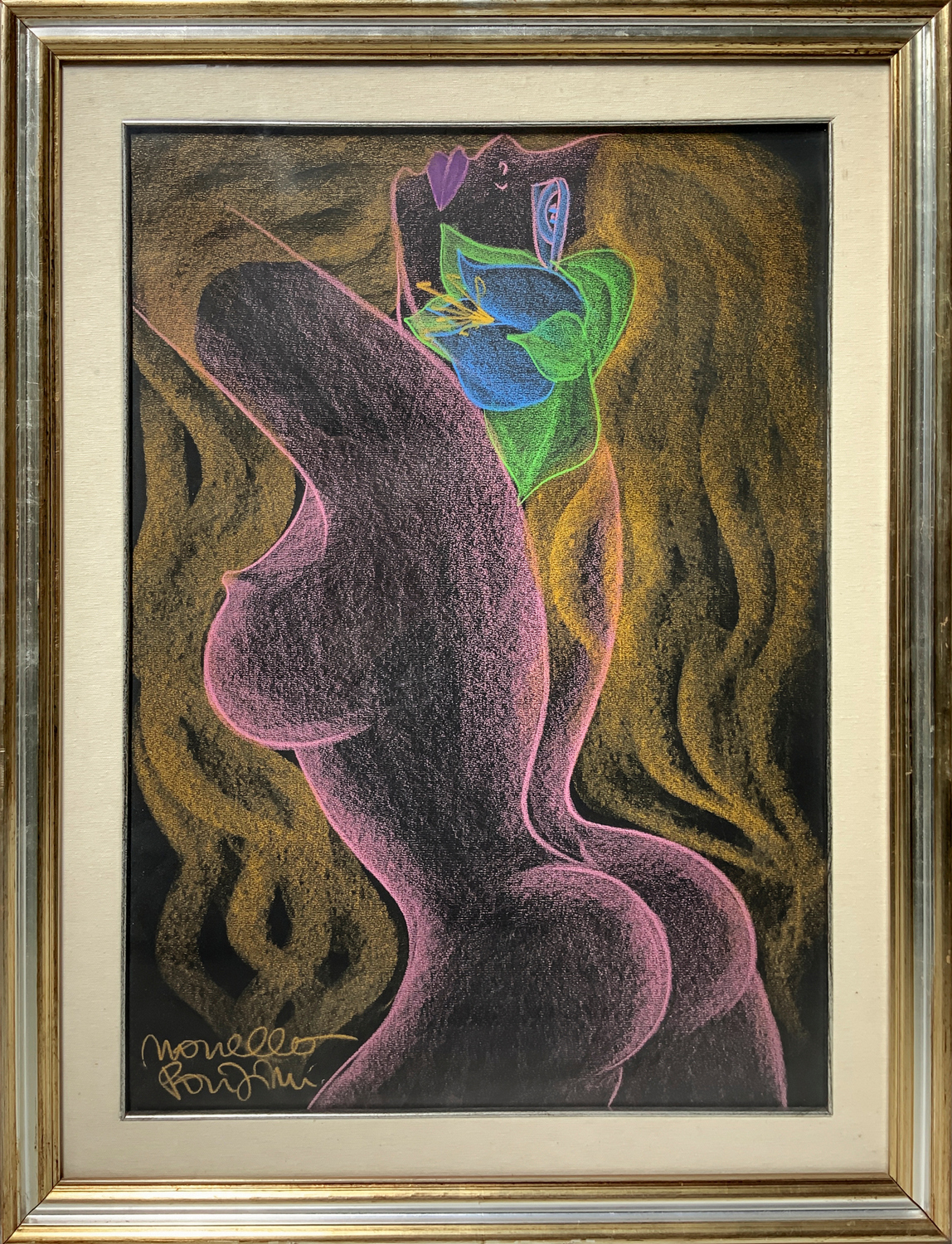 Dipinto a pastello raffigurante Nudo di donna. Firmato in basso a sinistra Novella Parigini (Chiusi 1921 – Roma 1993) . Cm 50x70, in cornice cm 85x65