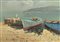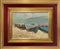 Dipinto ad olio su compensato raffigurante Barche a secco. firmato in basso a sinistra. Cm 28x38, in cornice 49x59
