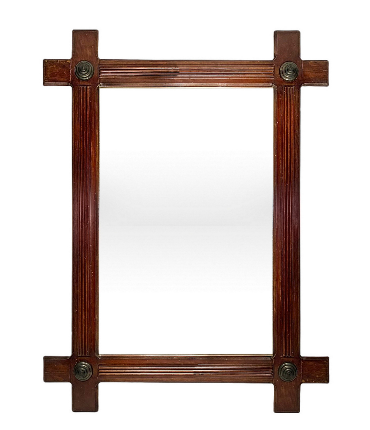 Coppia specchiere. Inizi XX secolo,in legno di mogano con borchie agli angoli in metallo brunito, inizi XX secolo