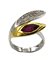 in oro bicolore 18 kt con rubino Birmano taglio navette di 1,44 ct circa e pavè di diamanti per 0,31 ct circa.